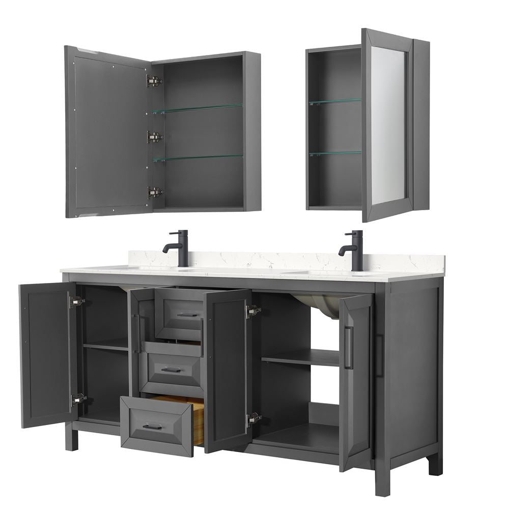 Elevate your bath with the Daria 72-inch double sink vanity from Wyndham Collection. Crafted from high-grade solid wood, plywood, and MDF with a water-resistant sealed finish, it pairs a White Carrara marble top with undermount square sinks and soft-close hardware for lasting performance.