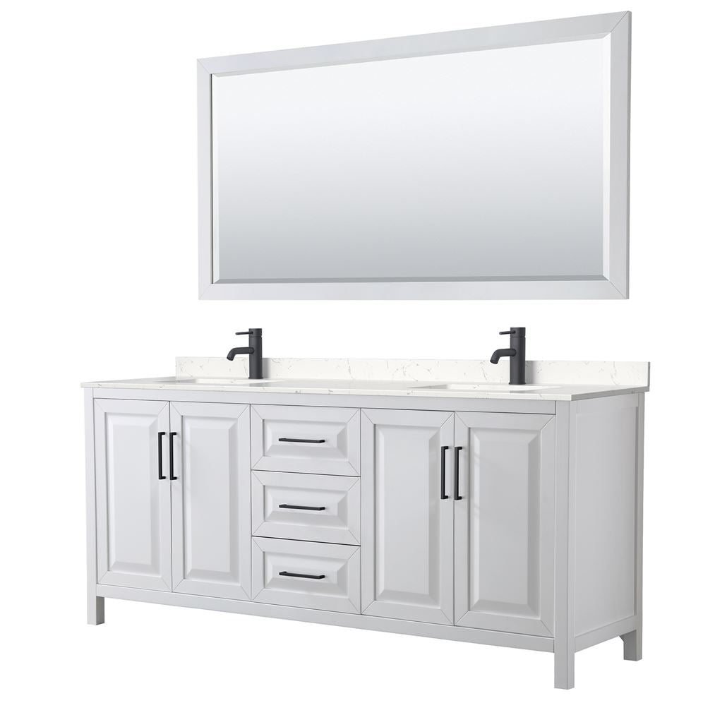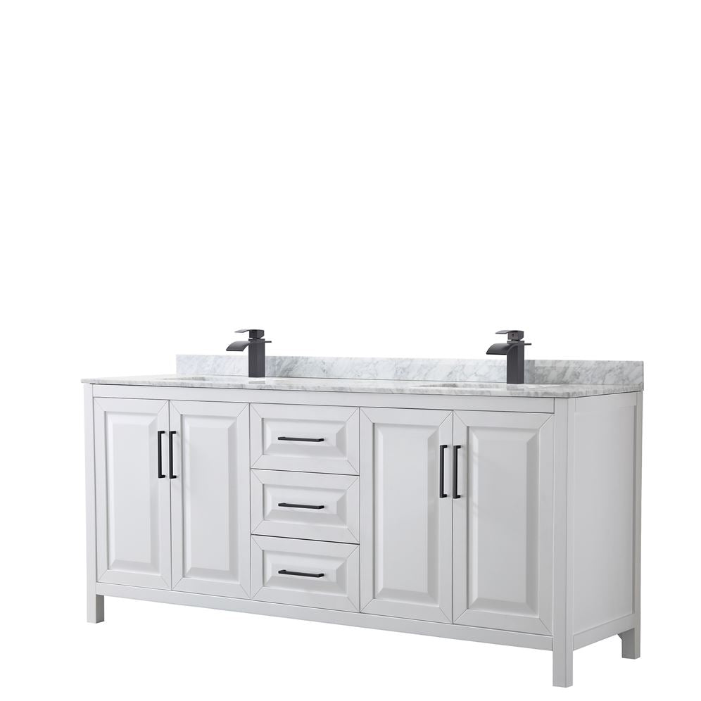 Wyndham Collection Daria 80-in White Double Sink Bathroom Vanity with White Carrara Marble Natural Marble Top (Mirror Included)