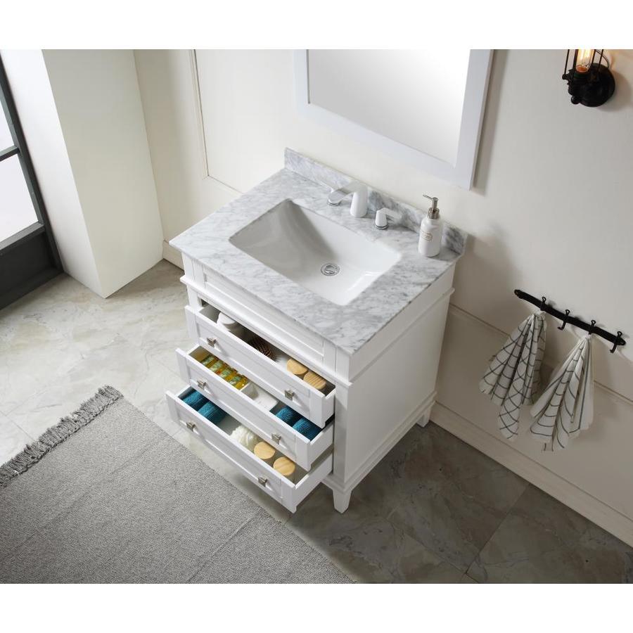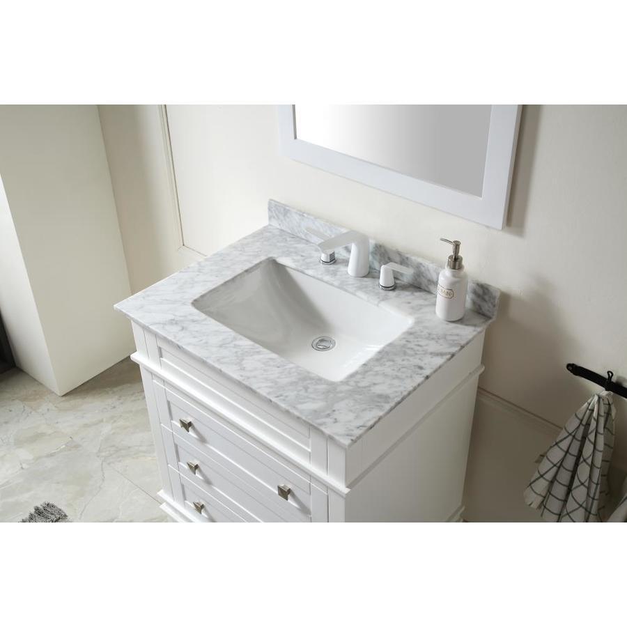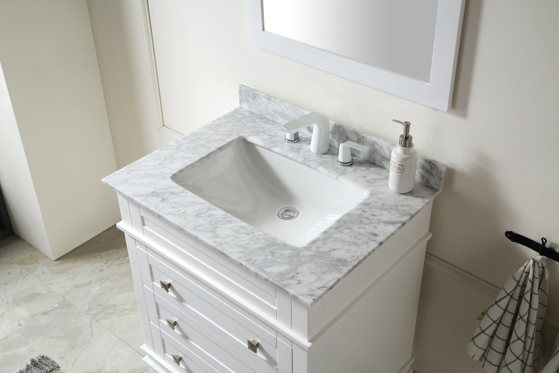 • Premium Materials: Carrara White Marble countertop and marine-grade ceramic basin with overflow for lasting beauty
