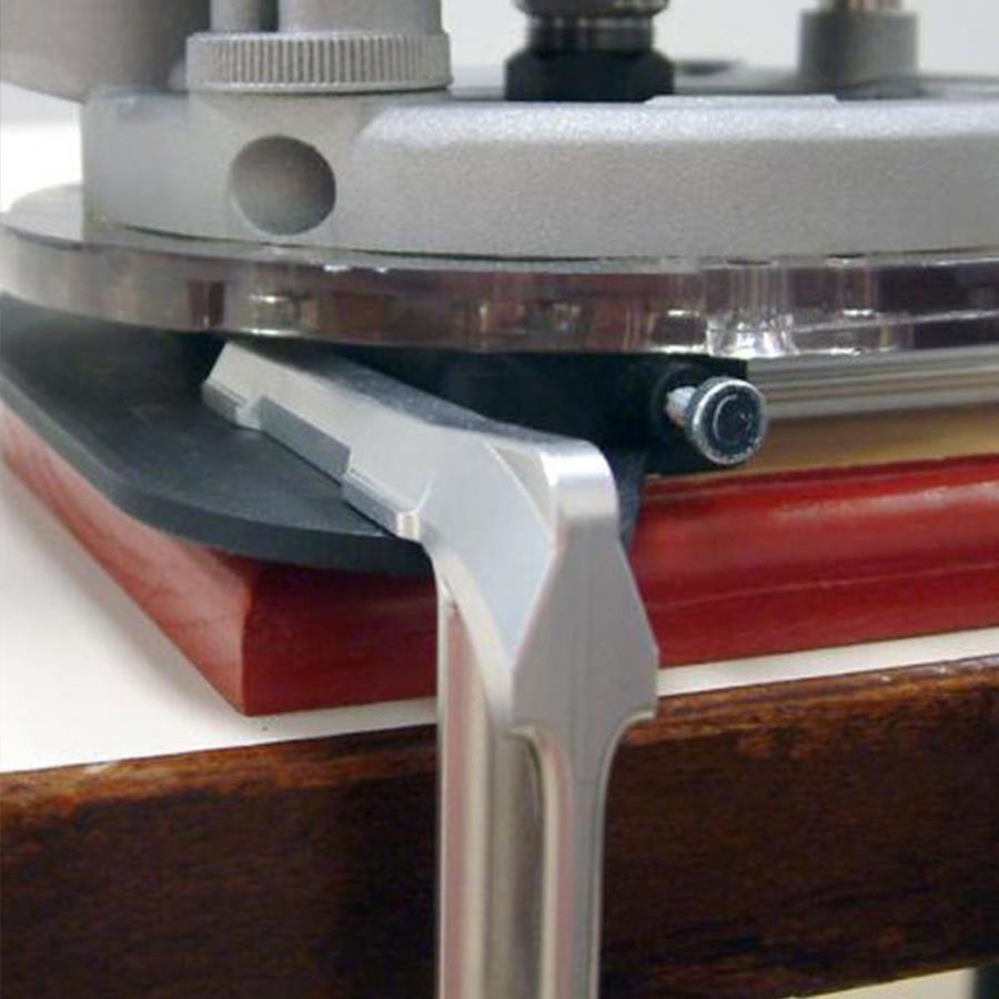 2 Low-profile c-clamps securely hold the workpiece without obstructing the router