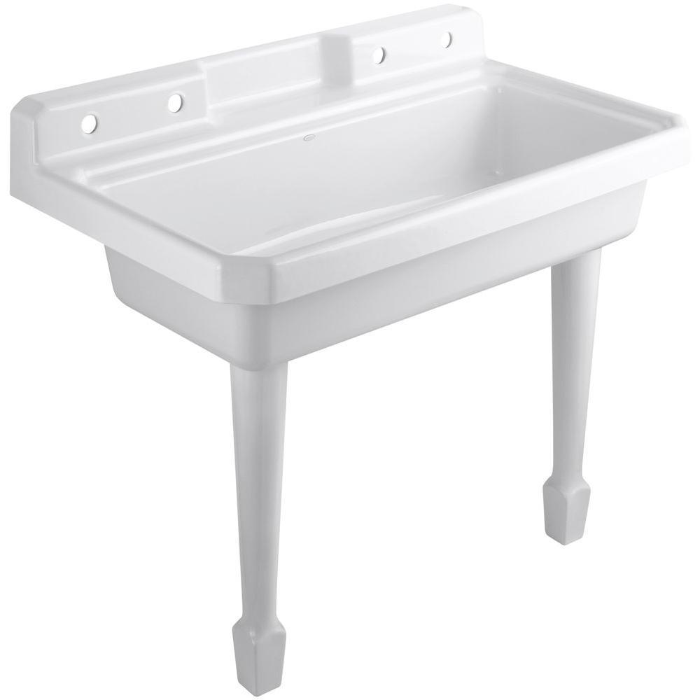 Harborview 48 in. x 28 in. Cast-Iron Top Mount/Wall Mount Utility Sink in White