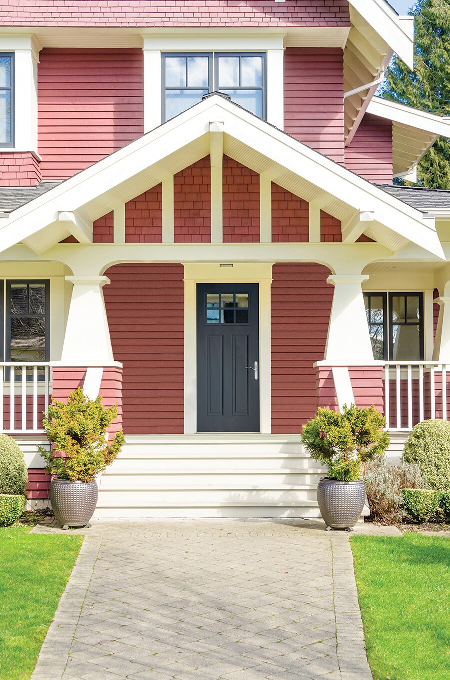 This black Craftsman entry sets a confident tone—clean lines and a crisp grid of glass give the façade architectural gravitas. The smooth, inky finish frames luminous Low‑E panes, creating a tailored contrast that elevates any porch. Pair it with brushed nickel hardware and creamy trim for a timeless, gallery-worthy welcome. It’s a subtle luxury that transforms curb appeal while working hard behind the scenes.