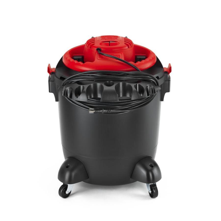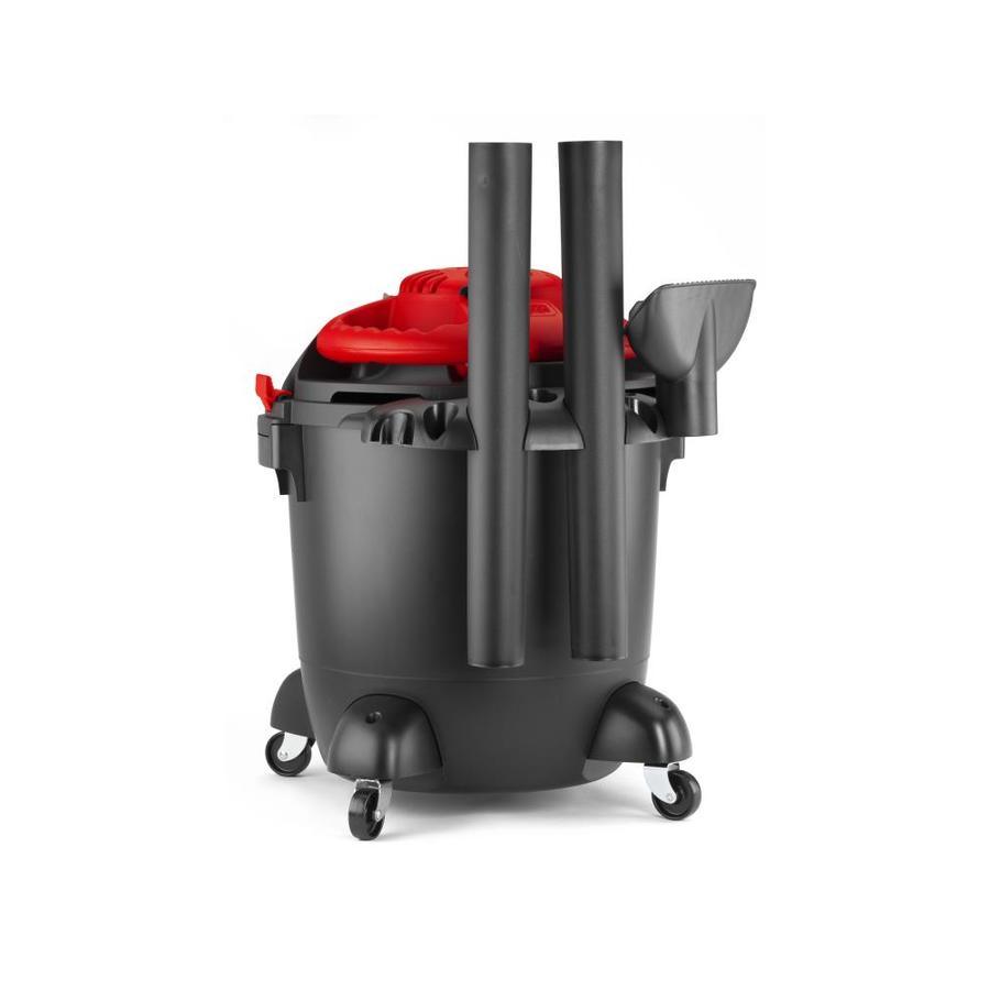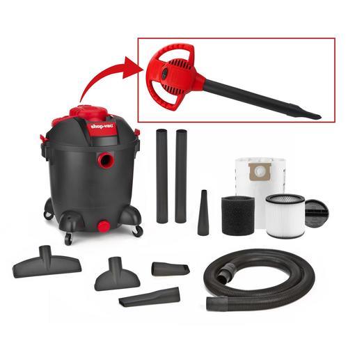 2-in-1 unit: detachable blower for yard cleanup and 12 Gallon 6.0-peak HP shop vacuum for cleaning basements, workshops, vehicle and houses Uses 10-14-gal collection bags, large cartridge filter, and large foam sleeve 18-Ft power cord and 8-ft hose allow for extended reach 2-1/2-in diameter hose is great for vacuuming wood chips and general workshop pickup Built-in tank drain for easy emptying of liquids 5-Year limited warranty Transport handles and casters for easy portability On-board cord and tool storage reduces clutter