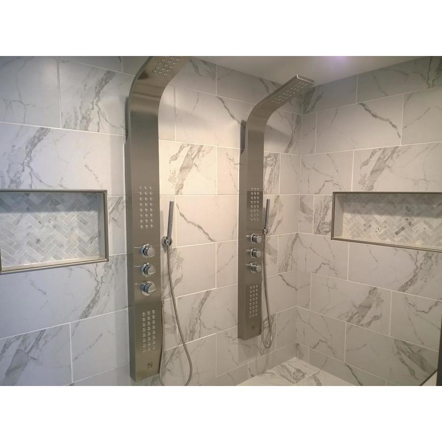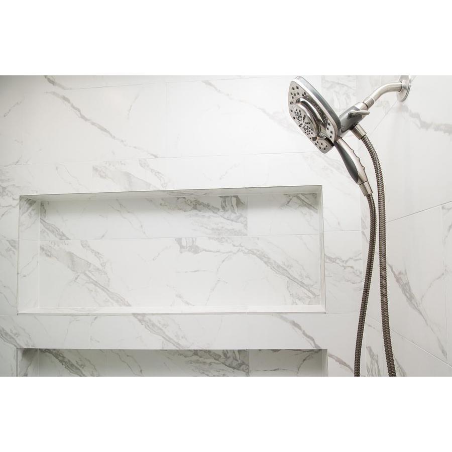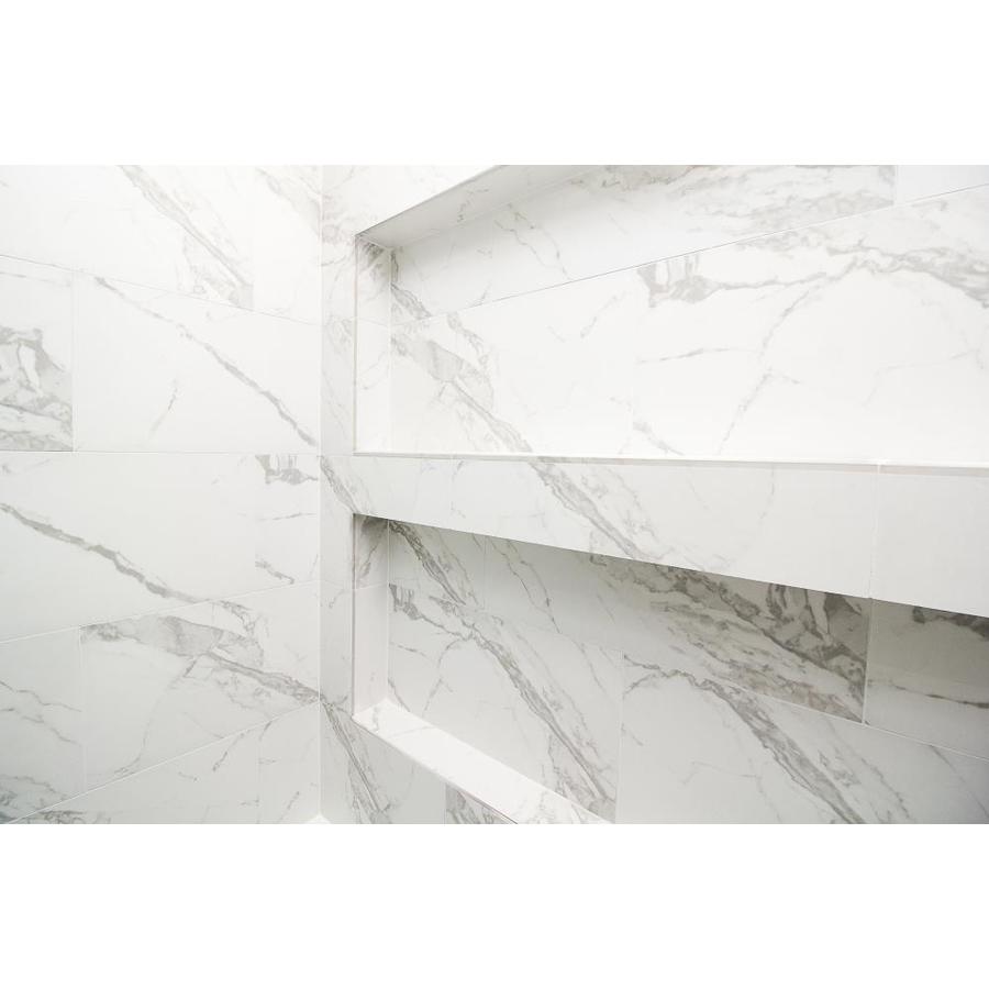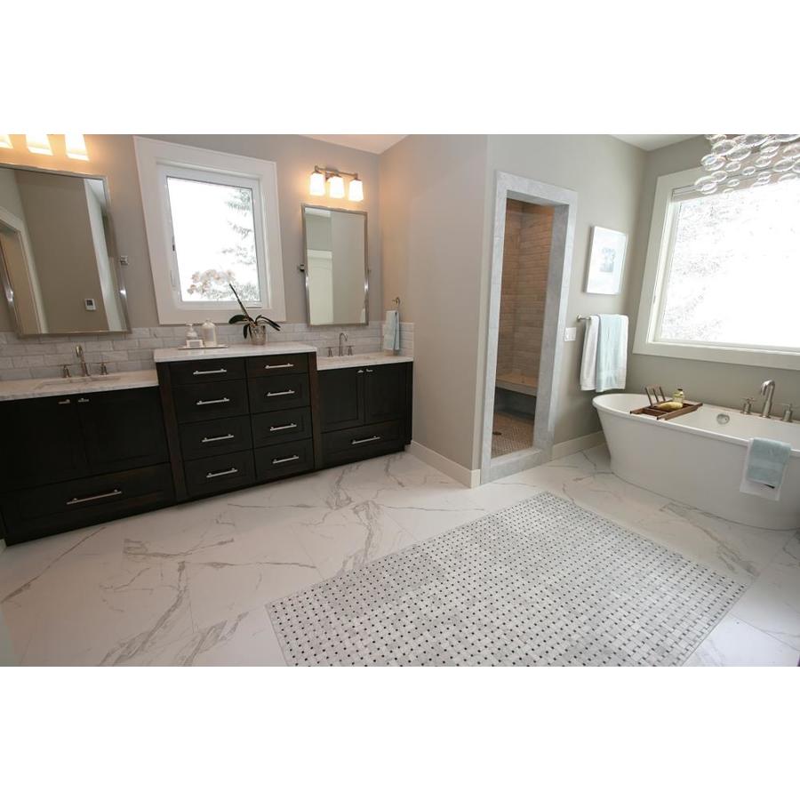 The classic beauty of honed Italian calacatta marble finds new form on highly durable porcelain tile Large-scale veining emulates the elegant look of marble in white and gray tones Large format and mosaic tile options invite unique design applications Ideal for a range of applications in environments where true marble cannot perform, including shower walls, exterior walls, and inside pools Environmentally friendly with zero VOCs Manufactured with high quality glazed porcelain for value and durability Easy to care for and maintain It is recommended to add 10% overage to the purchase to accommodate for cuts and waste during installation
