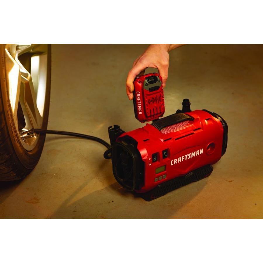 Includes (1) CMCE520 Inflator; (1) Ball needle; (1) Presta valve adapter; (1) Small inflatable adapter; (1) Large volume hose; Battery and charger sold separately
