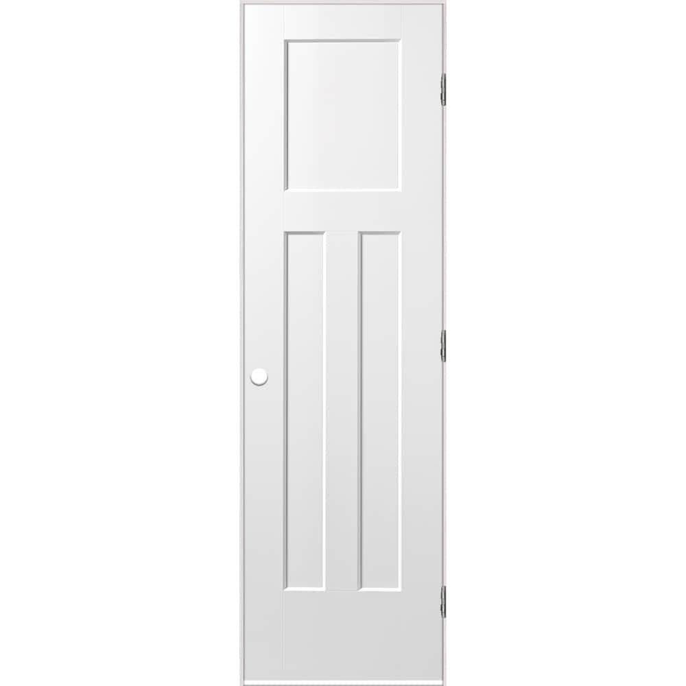 Masonite 24-in x 80-in Primed White 3-Panel Craftsman Hollow Core Molded Composite Left-Hand Inswing Single Prehung Interior Door