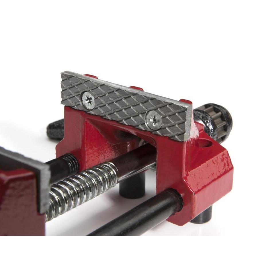 DURABLE STEEL JAWS - Durable tool steel serrated vise jaws are replaceable and provide a secure, non-slip grip on most materials