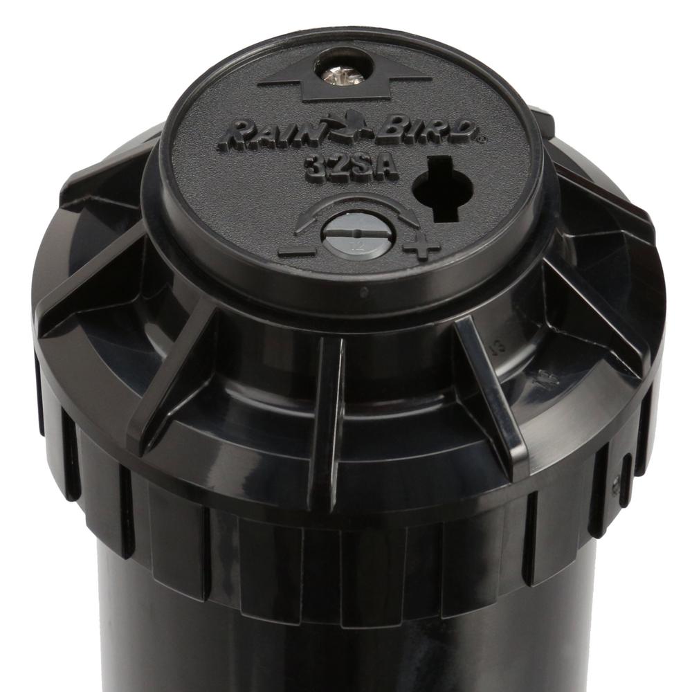 This professional grade Rain Bird 32SA rotor sprinkler features superior durability plus exceptional watering uniformity of patented Rain Curtain nozzle technology, resulting in a greener and more even lawn with reduced watering time. The rotor distributes larger water droplets that cover evenly throughout the pattern, also reducing wind-blown overspray. Nozzle micro ramps direct a portion of the spray near the head, adding gentle close-in coverage with reduced watering velocity that won't wash out new seed. Simple top adjustments for arc and distance help you keep water on the grass, not spraying on the house, sidewalk or driveway. The rotor also features a rugged dual-action, positive stop wiper seal that protects internals from debris and, together with a heavy duty stainless steel spring, assures positive retraction for leak-free performance. It installs on a standard 1/2 in. riser for simple replacement of older rotors.