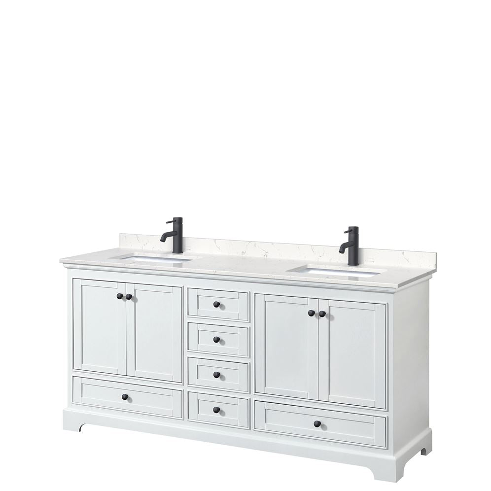Wyndham Collection Deborah 72-in White Double Sink Bathroom Vanity with White Carrara Marble Top