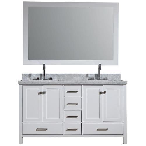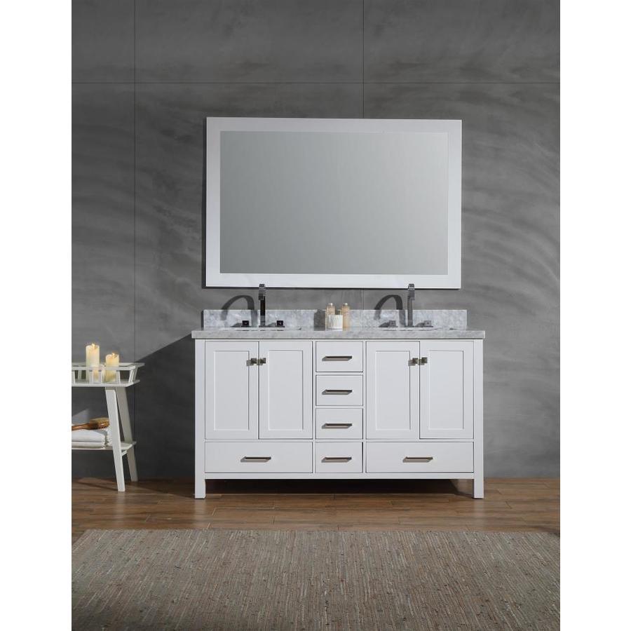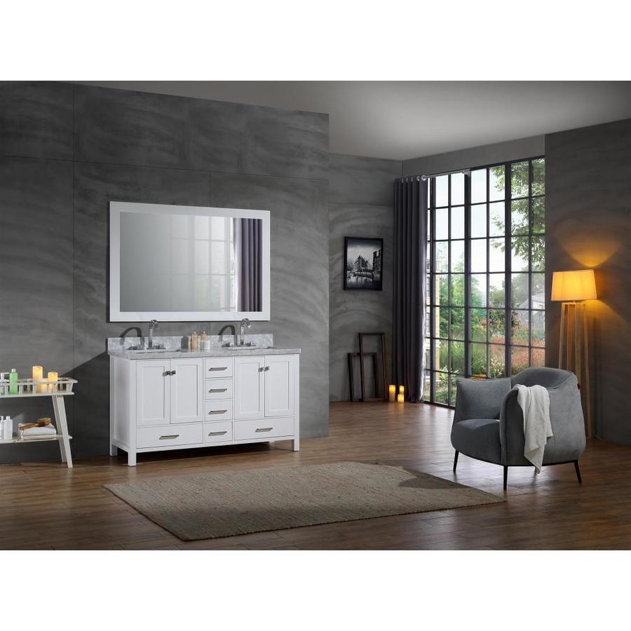 ARIEL Cambridge 61-in White Double Sink Bathroom Vanity with White Natural Marble Top (Mirror Included)