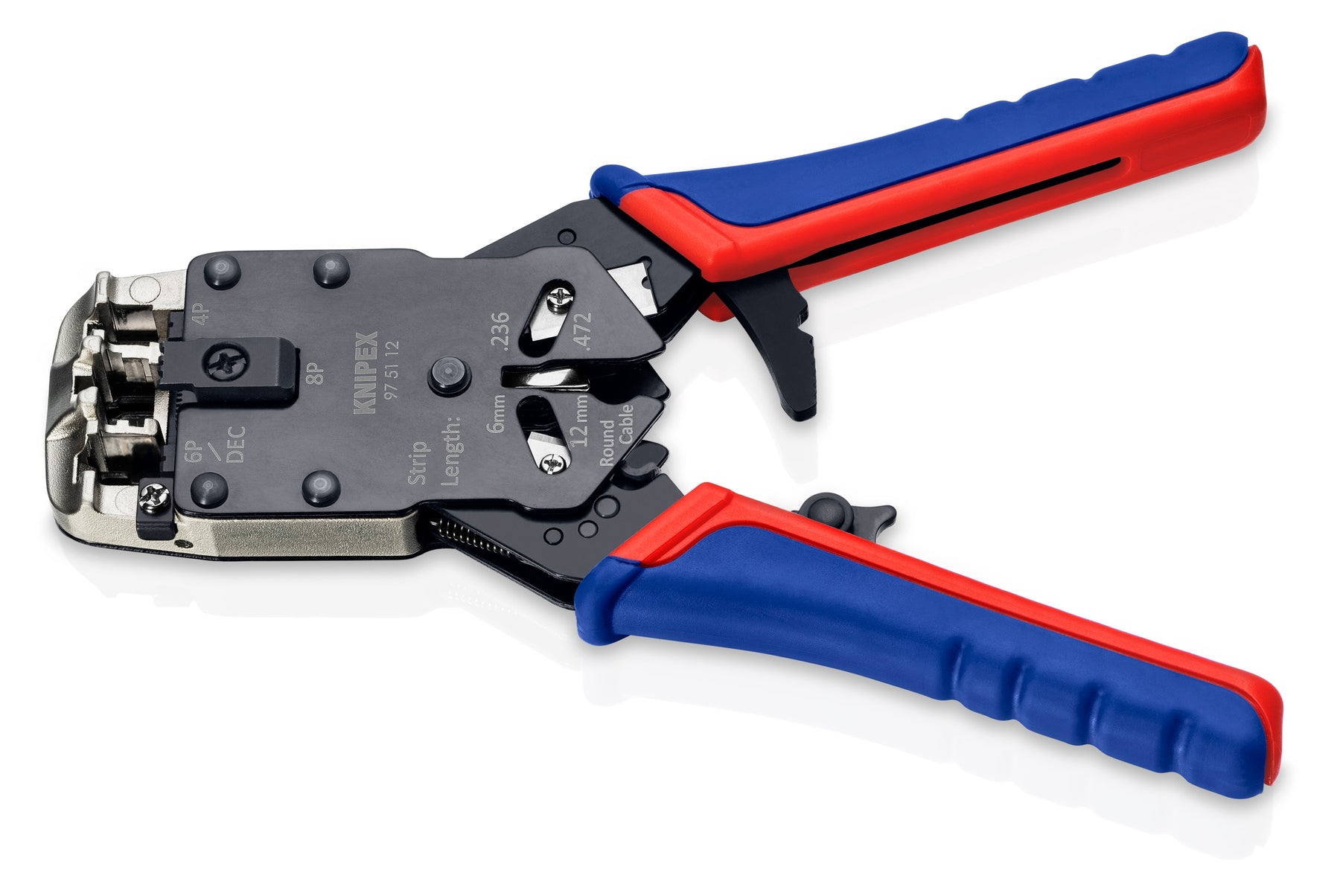 Multi-Function Crimper: Crimps 4-, 6-, and 8-pole western plugs (RJ10, RJ11/12, RJ45)