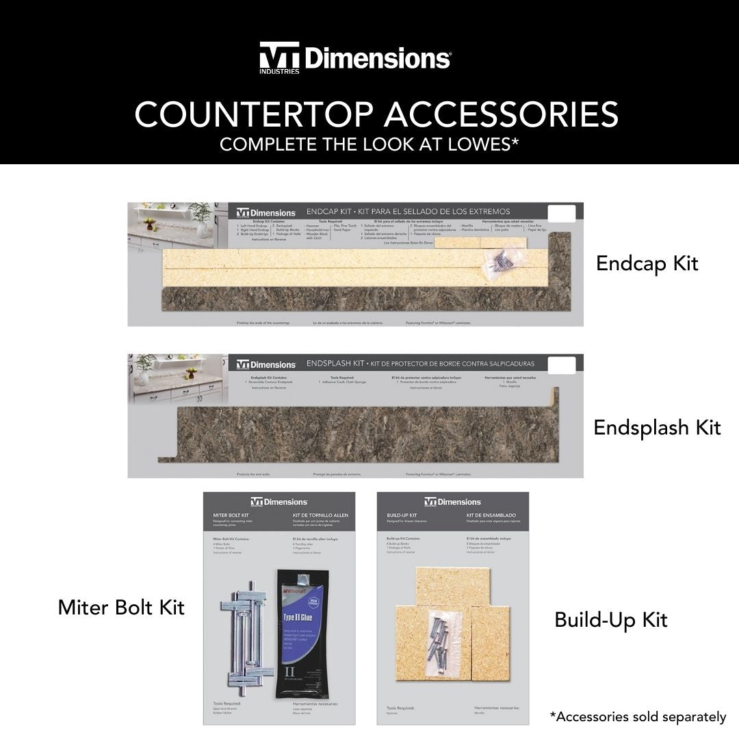 Bring the rich look of stone to your kitchen with VT Dimensions’ Wilsonart laminate countertop in Toffee di Pesco. The 6-ft straight countertop features a durable, easy-clean surface and an integrated backsplash with a Tempo waterfall edge for a seamless, finished look.