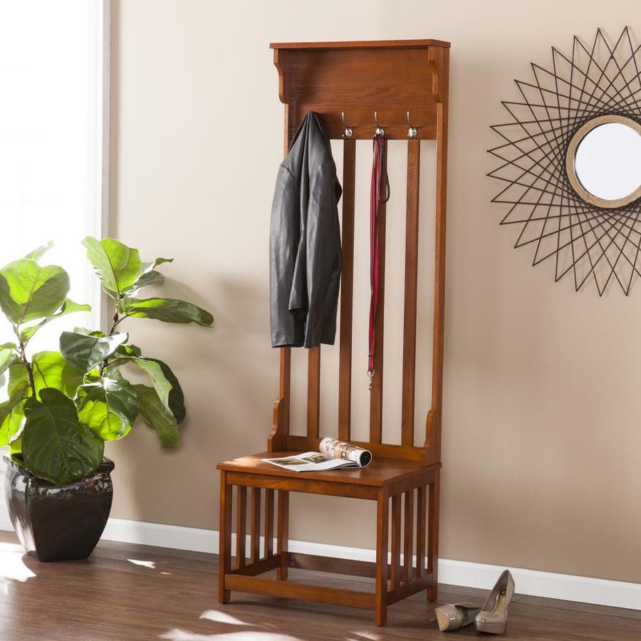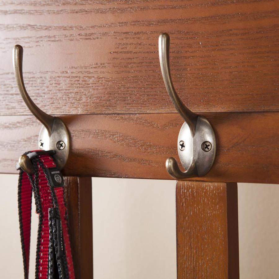 4 Double hooks provide storage for coats and scarves, a shelf for hats or purses and under seat corral for shoes