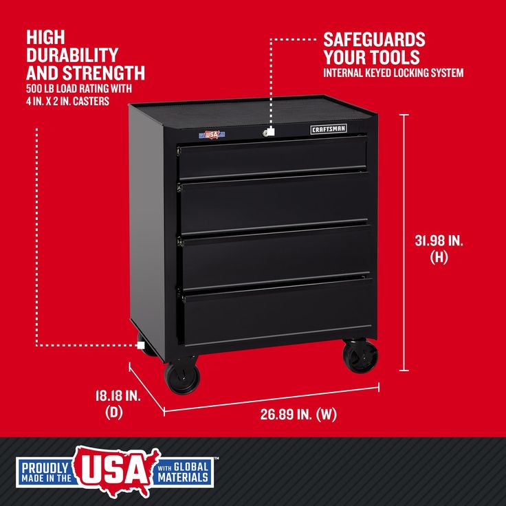 Includes (1) Rolling Tool Cabinet; (1) Set of keys; (1) Caster set