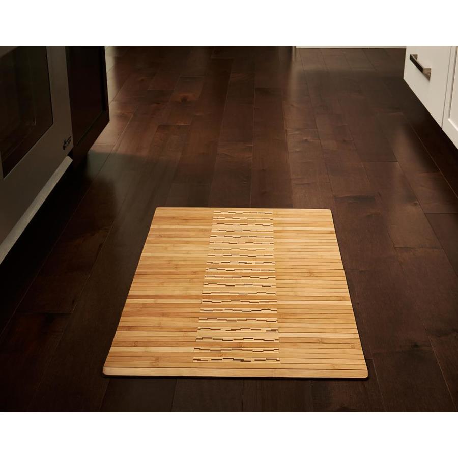 Sustainably harvested and offers distinct textural qualities Kiln-dried bamboo is machine-planed and sanded for a smooth finish Mitered polypropylene borders provide resilience and clean design Slight color variations may occur due to the unique, natural qualities of the bamboo Non-skid rubber backing keeps mat in place, unisex bath rug, geometric bath rug pattern Spot clean borders with a mild dish soap and water solution Clean with a non-abrasive cloth and gentle floor cleaner and wipe dry Plastic or felt casters recommended for chair of furniture legs to protect against scratching and cracking of bamboo slats 30-day limited warranty
