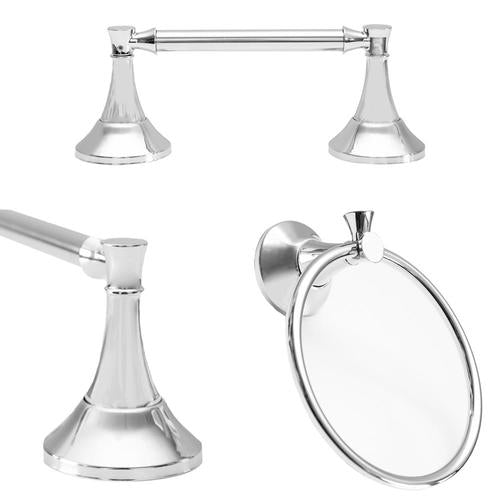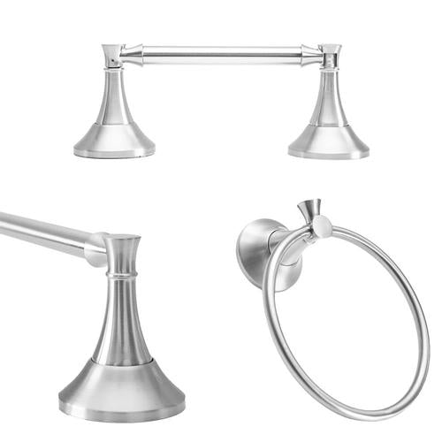 Set includes: 24 inch towel bar, toilet paper holder and towel ring