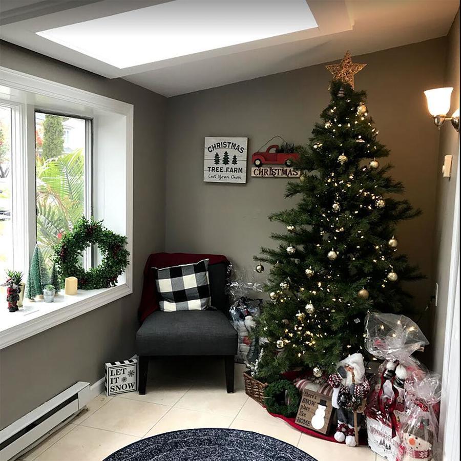 The tree needles are constructed out of non-allergenic and flame-retardant materials then painted multiple hues of green so no two are exactly alike