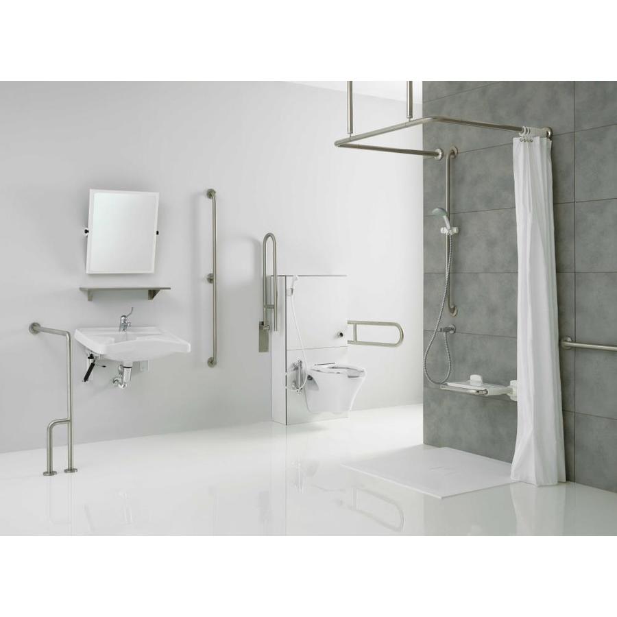 This support grab bar attaches from floor to wall with reinforcement