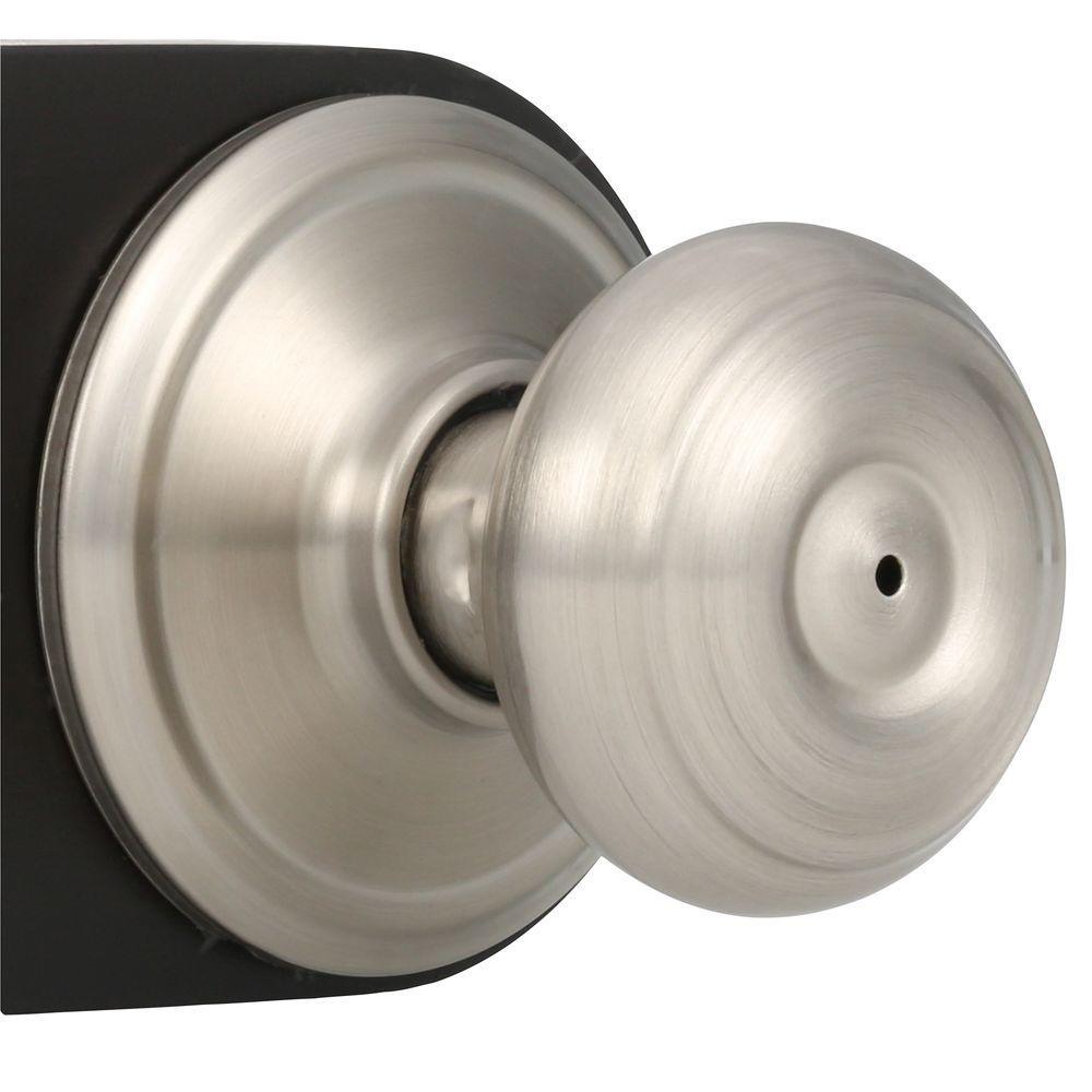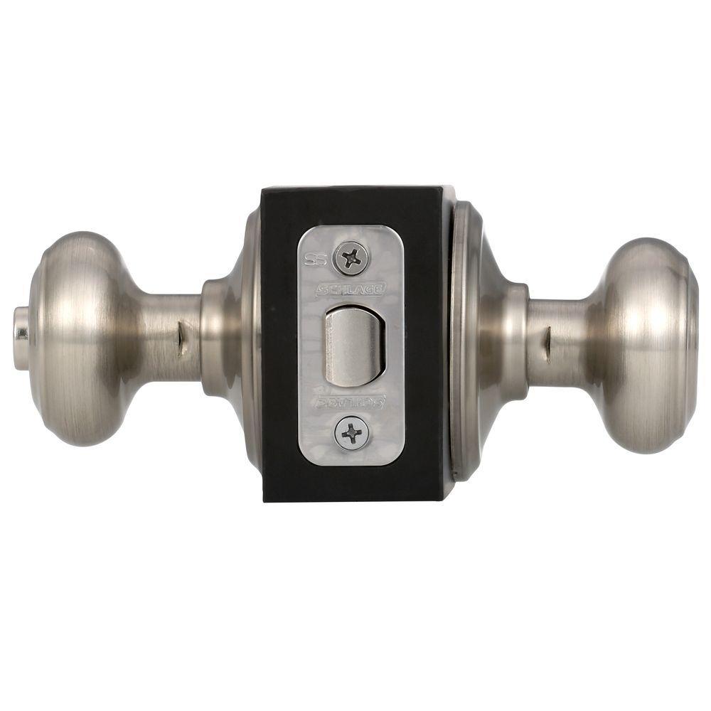 The Schlage Georgian Satin Nickel Privacy Door Knob is perfect for interior doors where locking is needed, such as bedroom and bathroom doors. The Georgian Knob features symmetrical detailing for a distinguished look in your home- especially when wrapped in our versatile Satin Nickel finish. The universal design of this privacy knob set allows it to be mounted to left or right swing doors and the finish coordinates nicely with other Satin Nickel fixtures in your house for a cohesive look. The workmanship and lustrous finish are protected by a lifetime limited warranty, certain to provide decades of dependable use and allure.