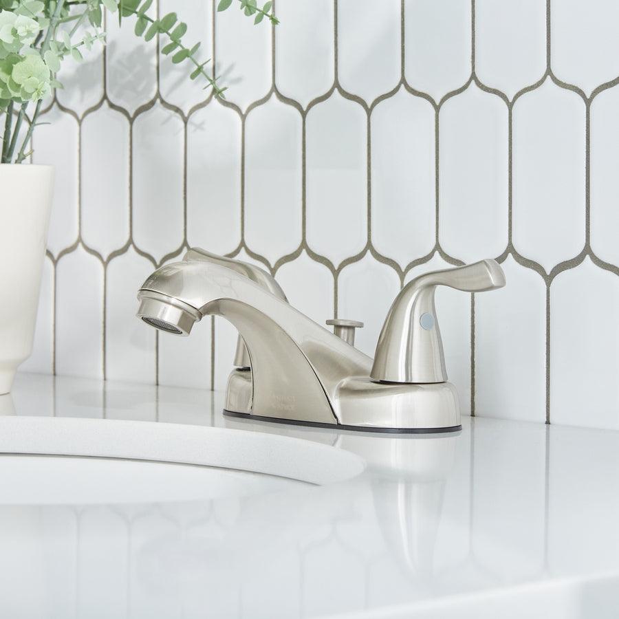 Upgrade your bath with water-saving performance and polished style—add this centerset faucet to your cart today.