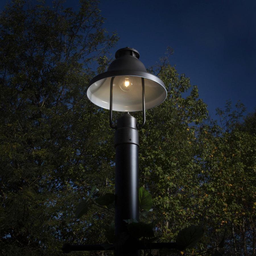 Steel housing and bronze finish protect against the environment Dark sky design directs light downward to prevent light pollution Uses (1) 100W incandescent bulb (not included) Easy to install (lamp post sold separately) Gasket designed for wet locations and ideal for the outdoors