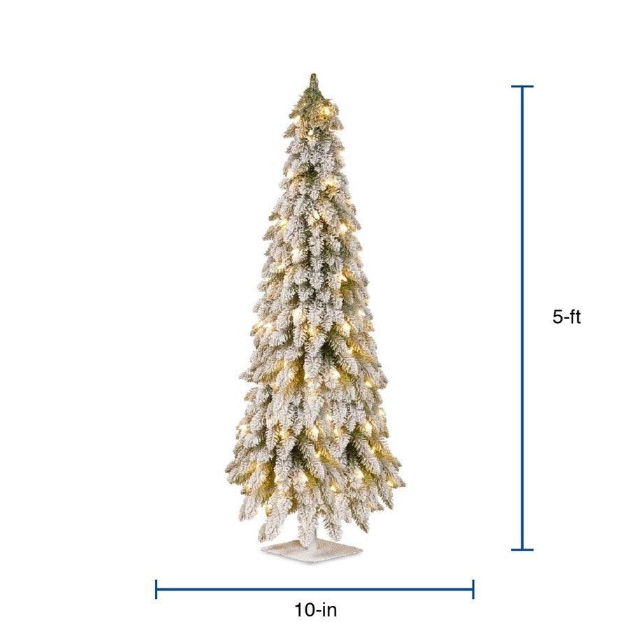 National Tree Company 5-ft Pre-Lit Slim Flocked Artificial Christmas Tree with 200 Constant White Clear Incandescent Lights