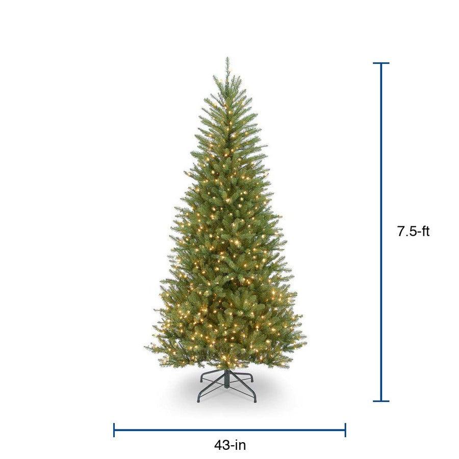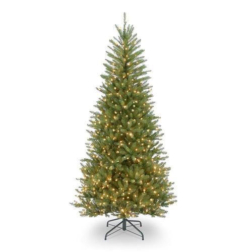 The Dunhill Fir is a slim profile tree that is great for display in corners, small rooms and areas with limited space It is pre-strung with 600 clear lights that remain lit even if a bulb burns out This three section tree features hinged branches for ease of assembly Sturdy folding metal tree stand is included 1600 tips Flame resistant materials Hook-in, hinged and wrapped construction
