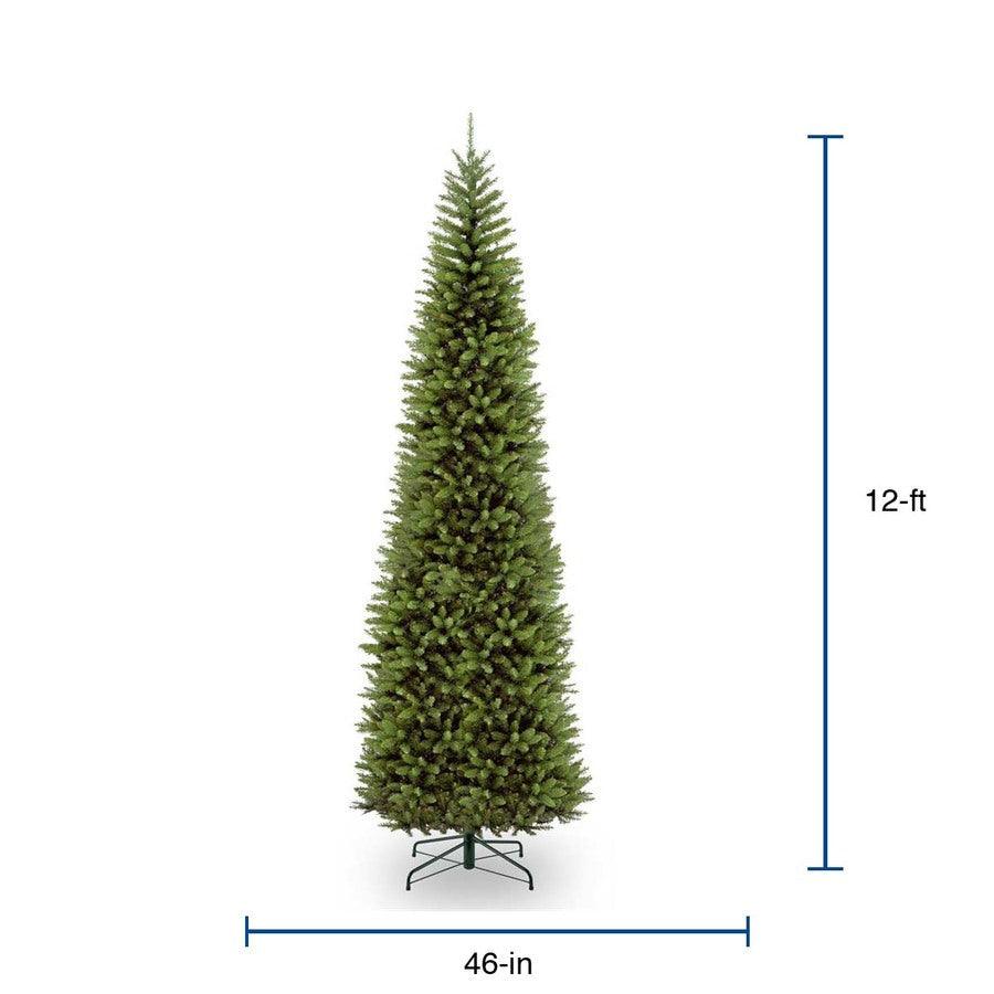 Though tall in height, this Kingswood Fir tree has a pencil thin profile that may make it better for display in corners or areas with limited floor space, compared to typical full width trees of similar height