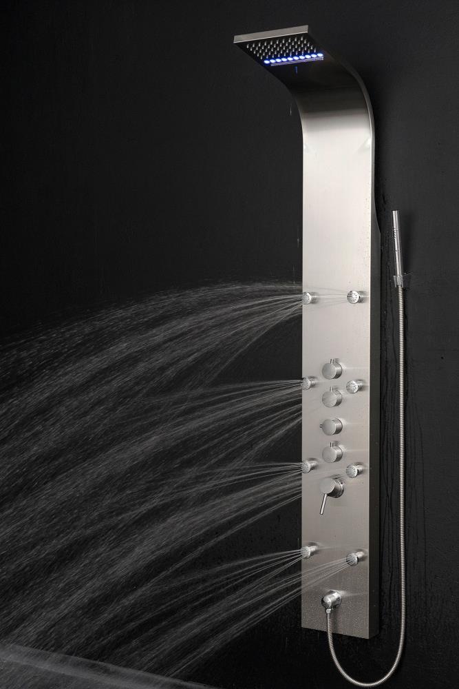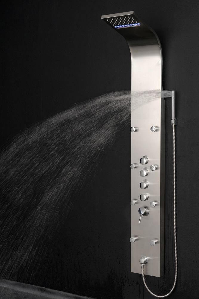 63-in Stainless Steel Shower Panel with Rainfall/Waterfall, 8 Body Jets & Handheld