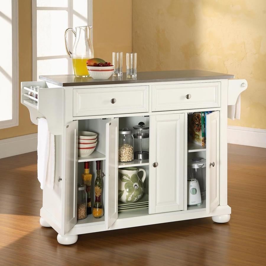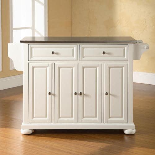 Crosley Furniture White Composite Base with Stainless Steel Metal Top Kitchen Island (18-in x 52-in x 34-in)