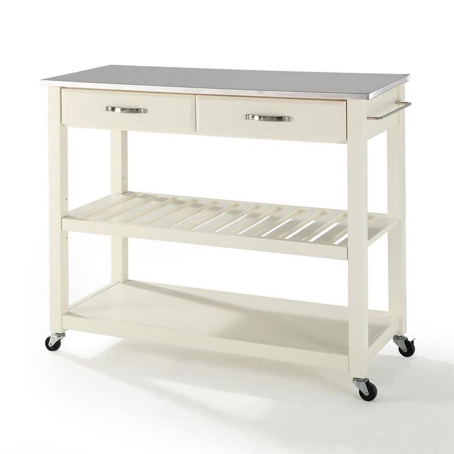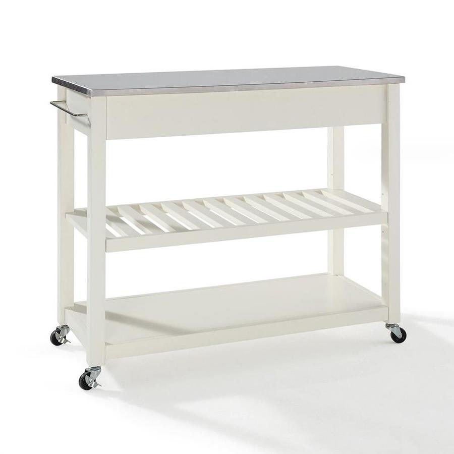 Crosley Furniture White Composite Base with Steel Metal Top Kitchen Cart (18-in x 43-in x 35-in)