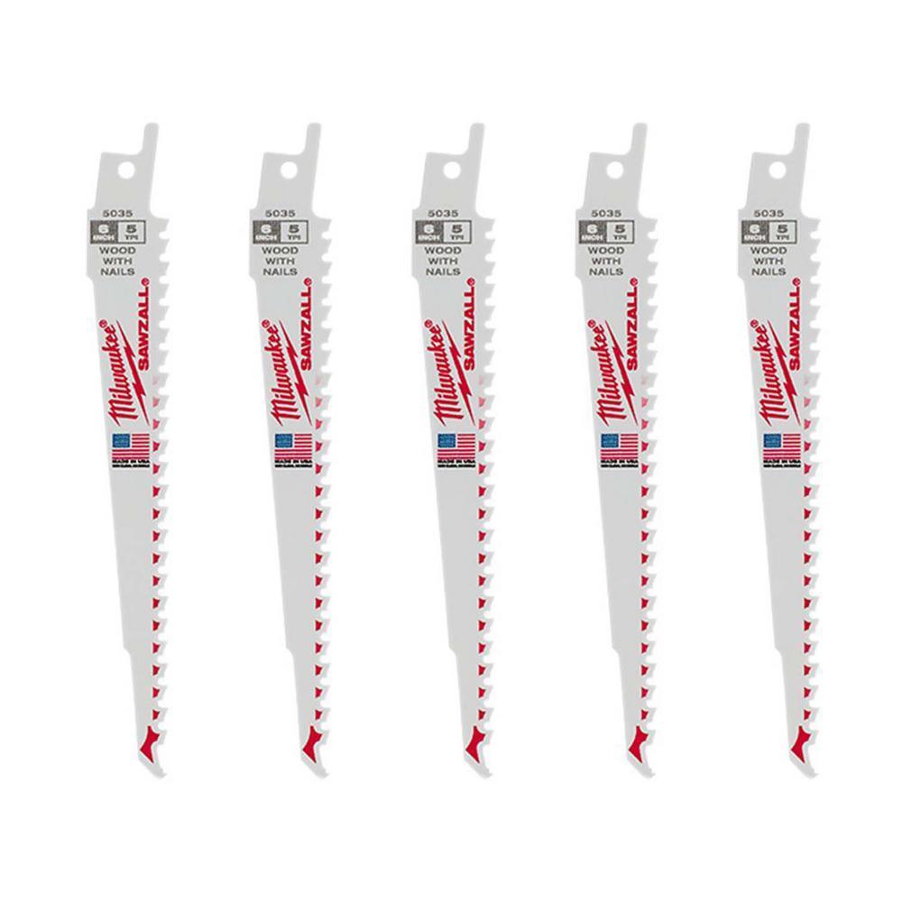 Milwaukee 9 in. 5 TPI Wood-with-Nails SAWZALL Reciprocating Saw Blades, Thin Kerf, 5-Pack