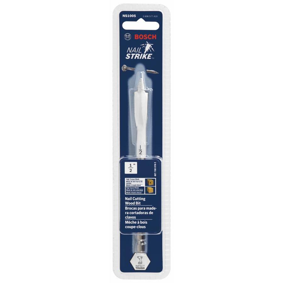 Nail-killing wood-boring bit design – adds extreme durability to Bosch speed for nail-embedded wood Reinforced reamer cutting edges – make this bit the first wood-boring bit to drill through nails Optimized for wood and some wood with nails – combines superior drill speed with engineered nail-cutting durability Fully threaded cone tip – pulls the bit through wood quickly and effortlessly Contoured paddle design – increases speed with faster chip removal Hex shank – improves bit grip and allows use with a variety of drill types Premium bit material – combined with innovation for great performance and life