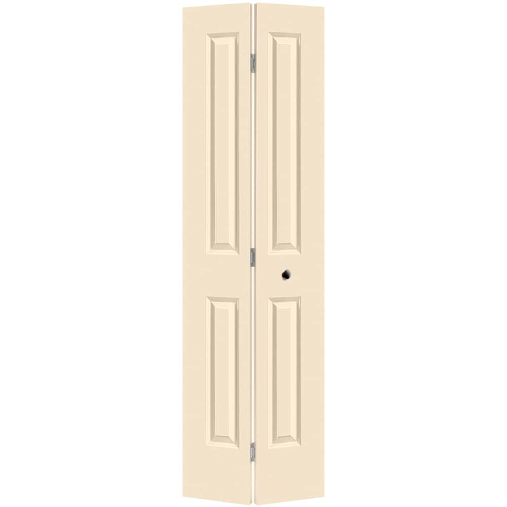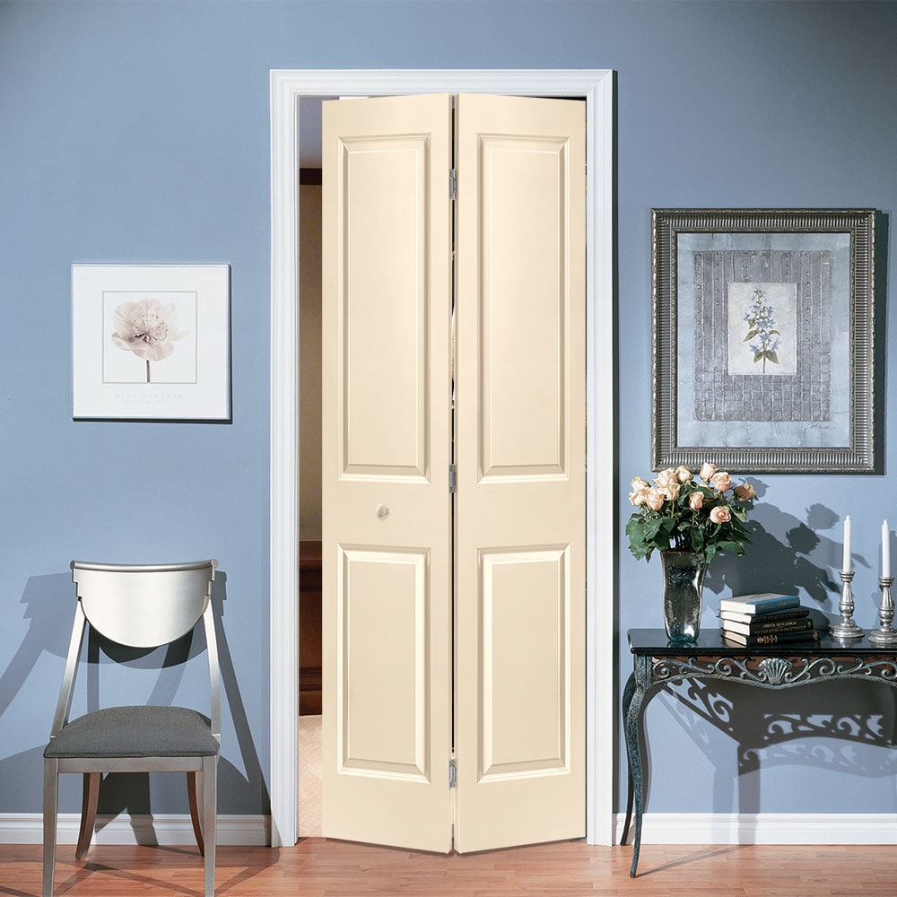 Save space and refresh closets or pantries with this Masonite Traditional bifold door. The prefinished molded composite construction features a smooth 4-panel square design in Cream N Sugar and hollow-core build for lightweight durability. Includes track and hardware for quick installation.