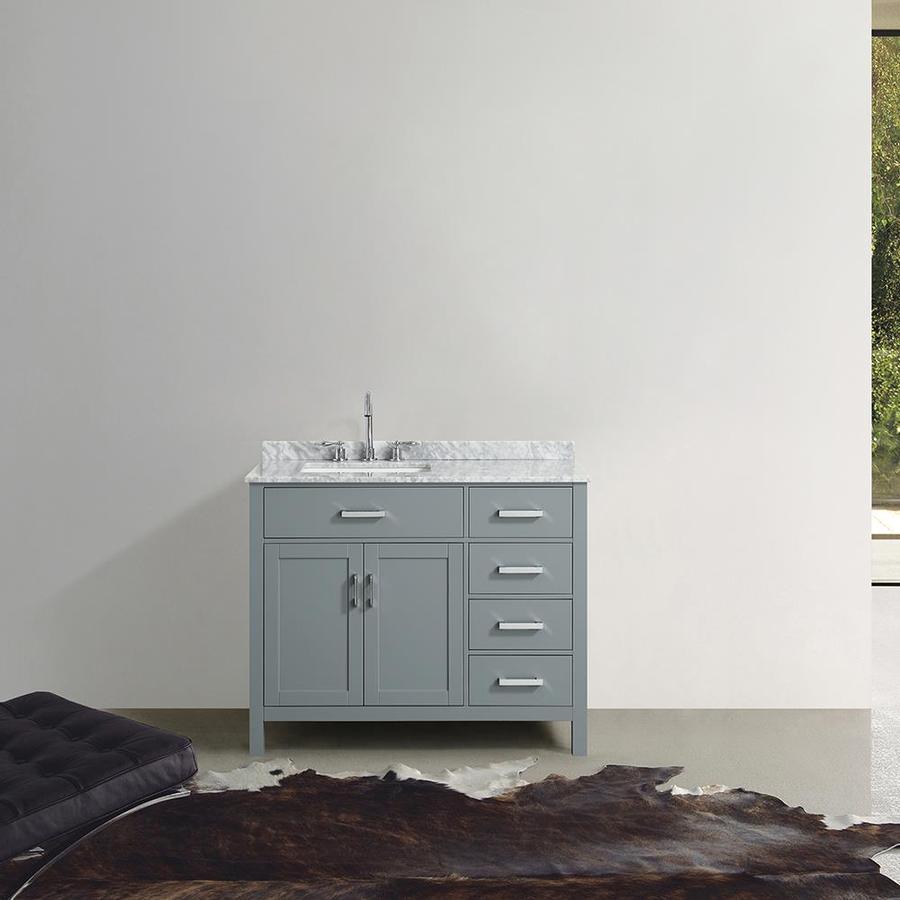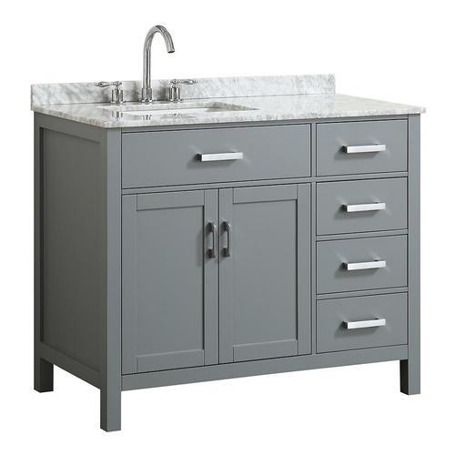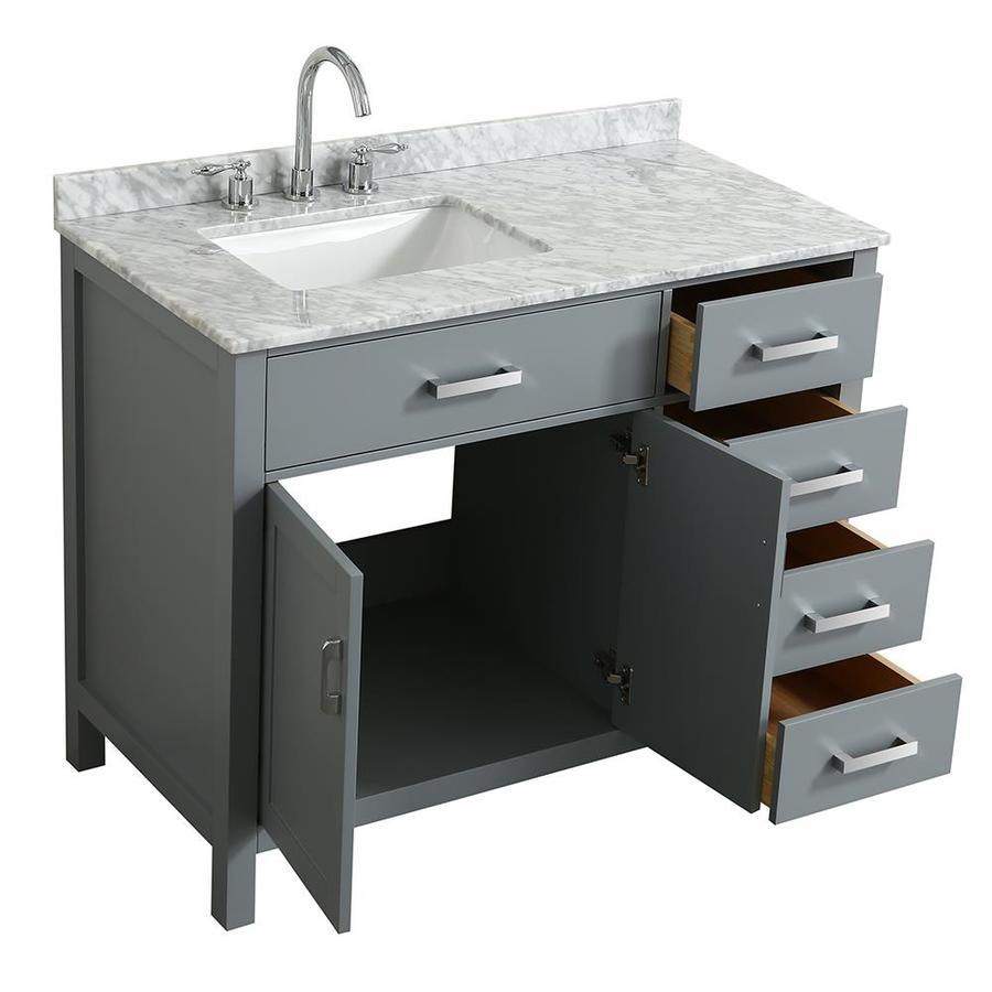 Beaumont Decor Hampton 43-in Gray Single Sink Bathroom Vanity with White Natural Marble Top