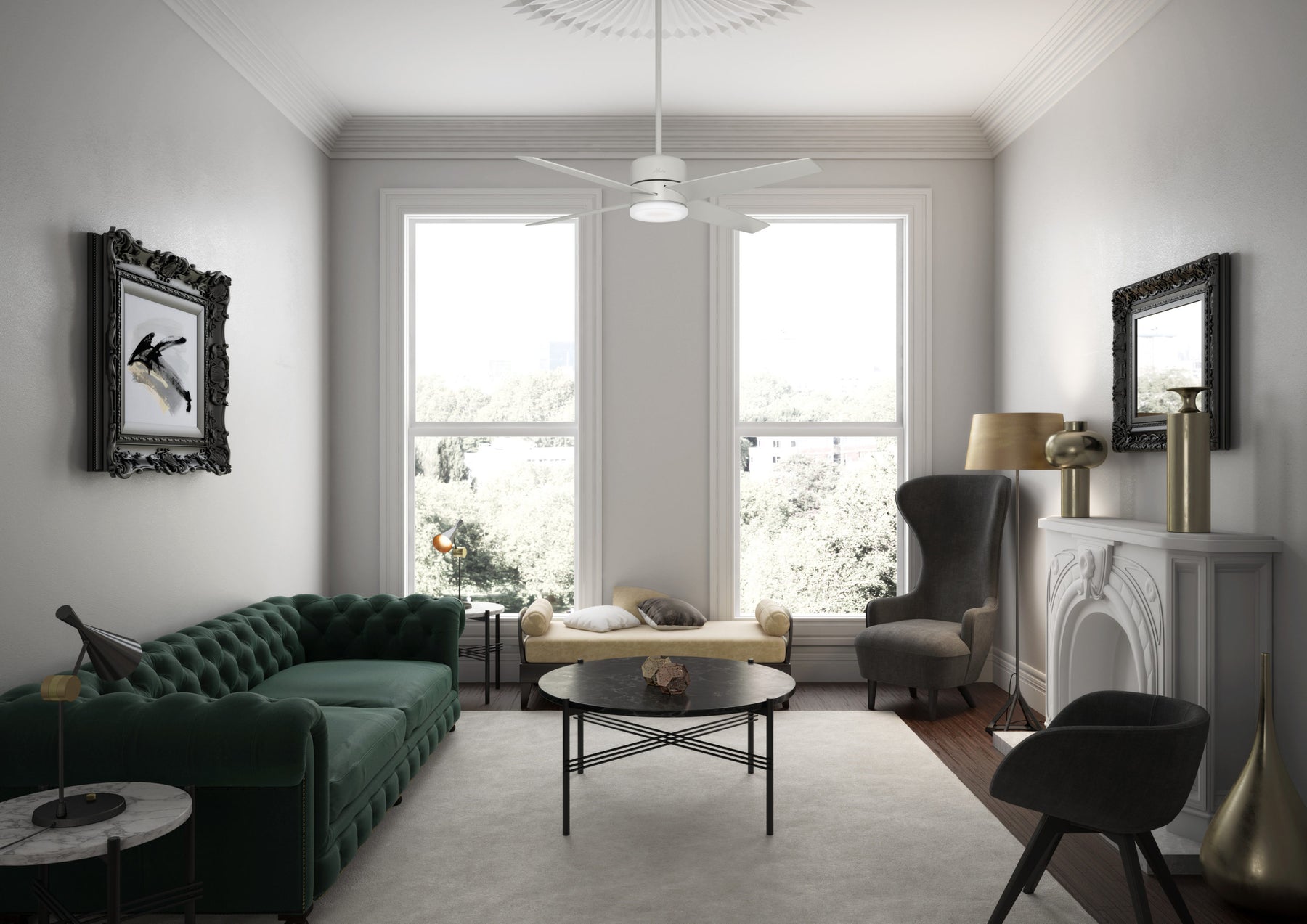 The Advocate’s crisp silhouette and fresh white finish create an airy, gallery-like calm in any great room. Its seamless LED lens and slender 4-blade profile feel purposeful and refined, a modern statement that doesn’t overpower. Pair it with pale woods and sculptural seating to echo its clean geometry and reversible White Ash blades. Smart control and whisper-quiet performance make it an essential touch of effortless luxury.