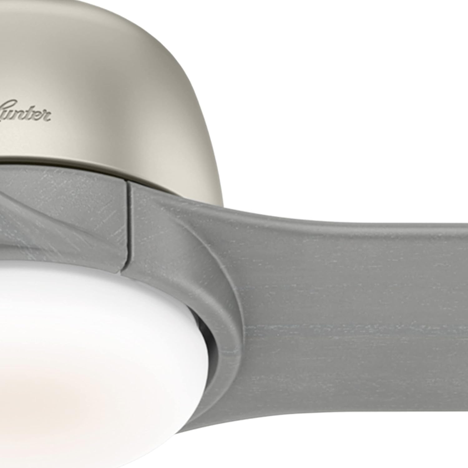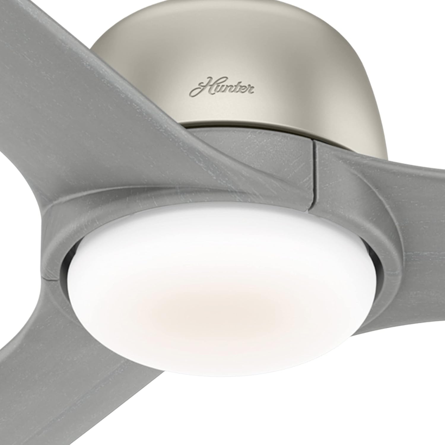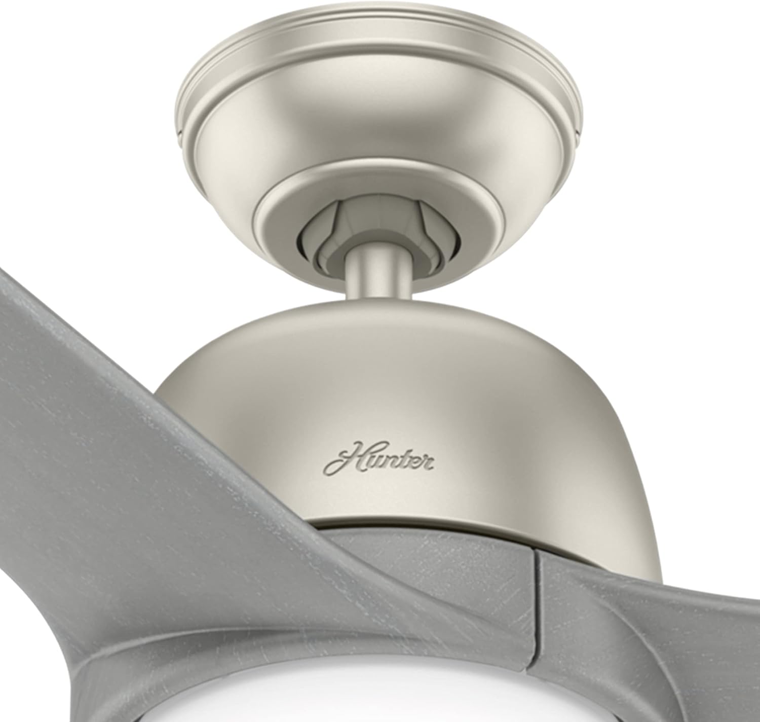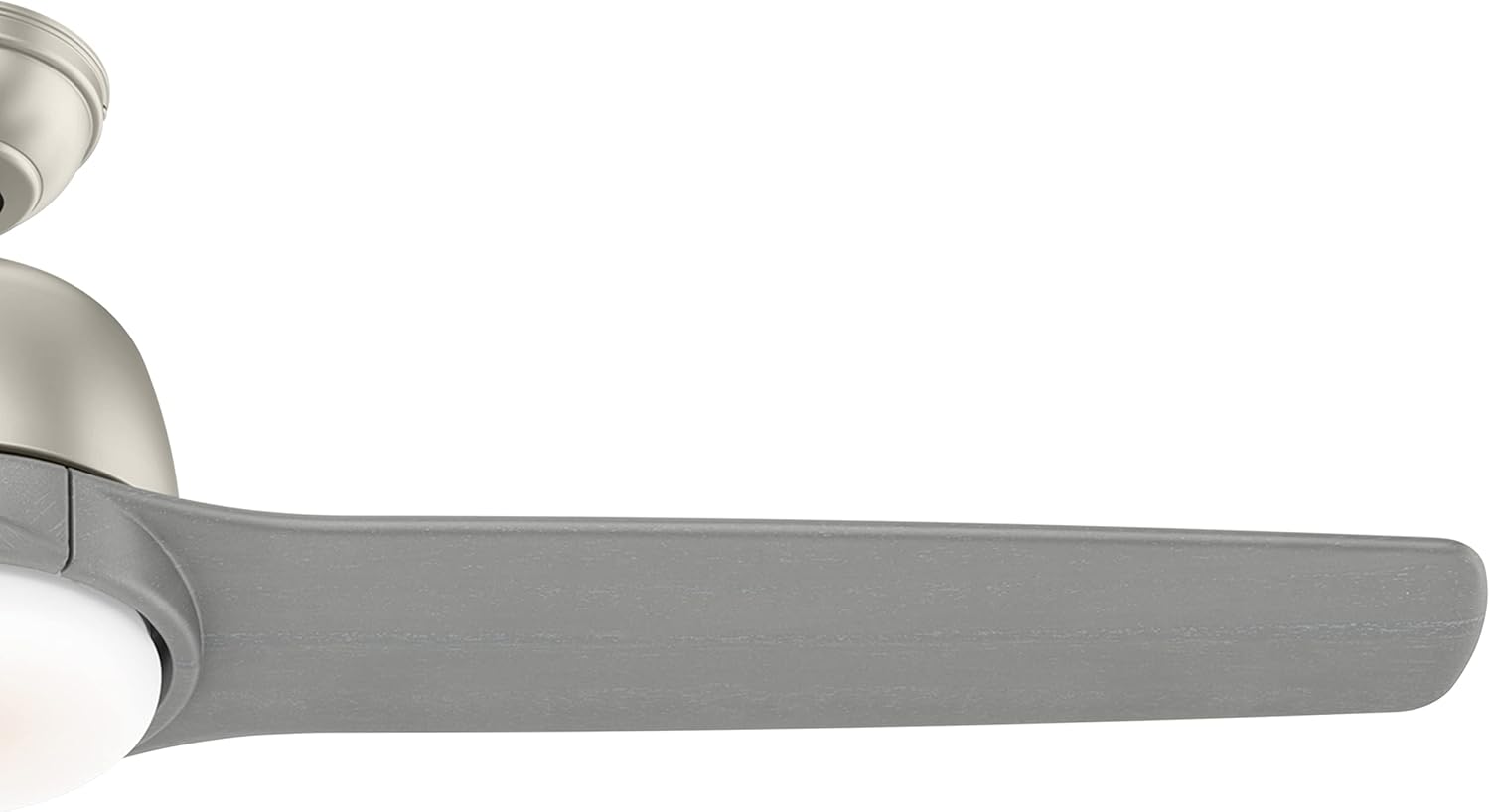 Sleek and modern, the Hunter Advocate brings smart comfort to large rooms with a quiet 6-speed DC motor and WiFi-enabled control. Its matte nickel finish pairs with integrated dimmable LED lighting and a handheld remote for effortless speed, light, and direction changes.