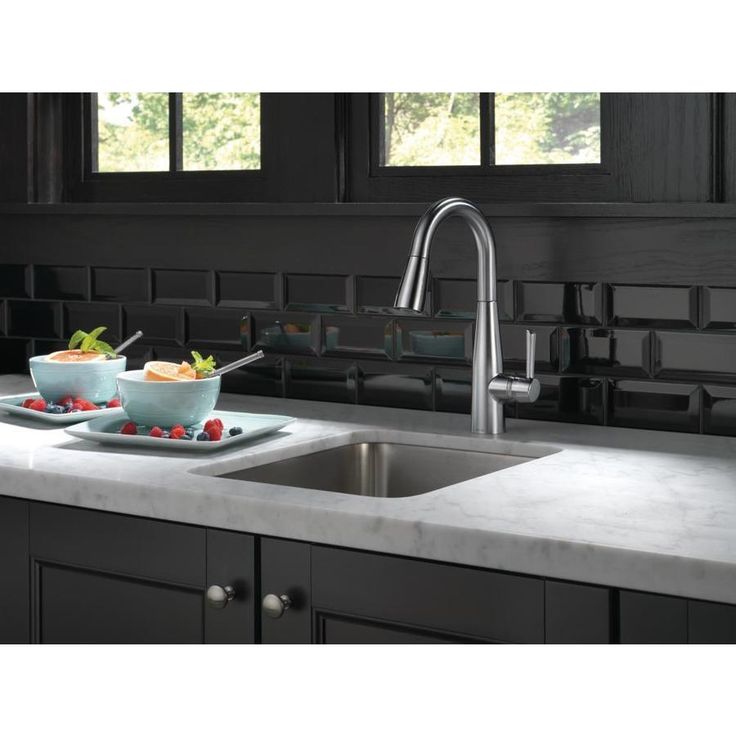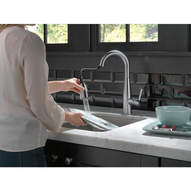 Delta Essa Arctic Stainless 1-Handle Deck-Mount Pull-Down Handle Kitchen Faucet