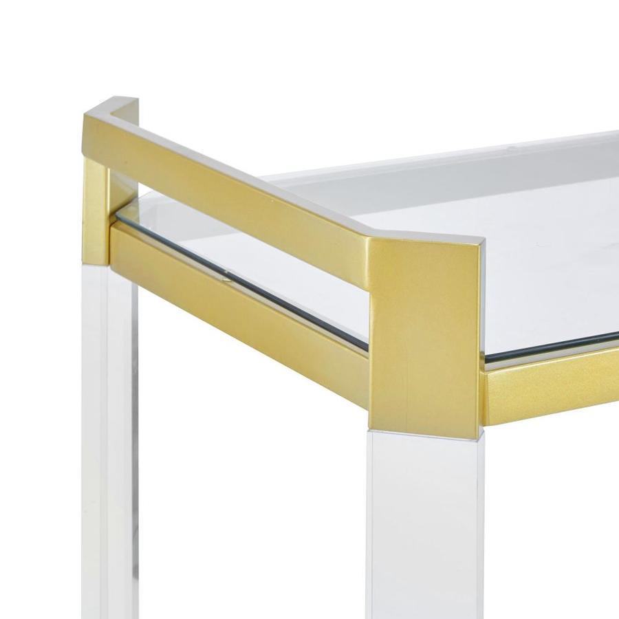 Steel, glass and acrylic construction 2 Shelves Golden accents Locking casters