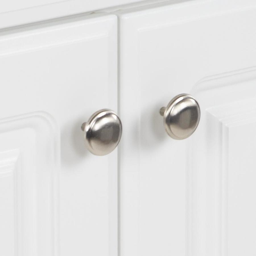 This bright white vanity brings a crisp, tailored presence to the bath, effortlessly refreshing the room with its integrated marble-look top. The gentle raised-panel doors and brushed nickel knobs offer a quiet sophistication that pairs beautifully with subway tile or patterned floors. Style it with a pared-back centerset faucet and a slim mirror for a clean, modern-traditional vignette. A staple piece that anchors everyday luxury with simplicity and function.