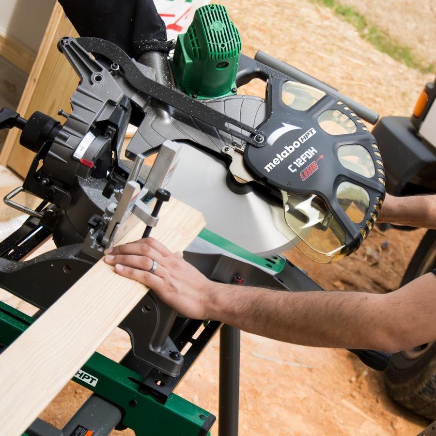 THUMB ACTUATED POSITIVE STOPS: Miter angles can be quickly adjusted