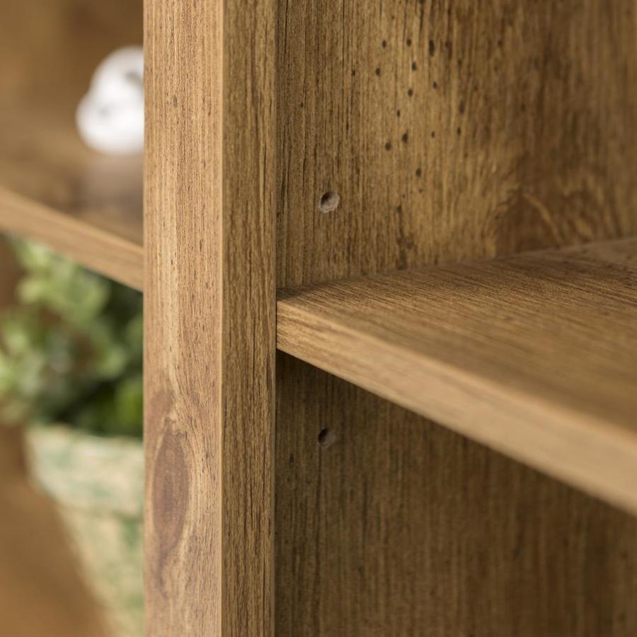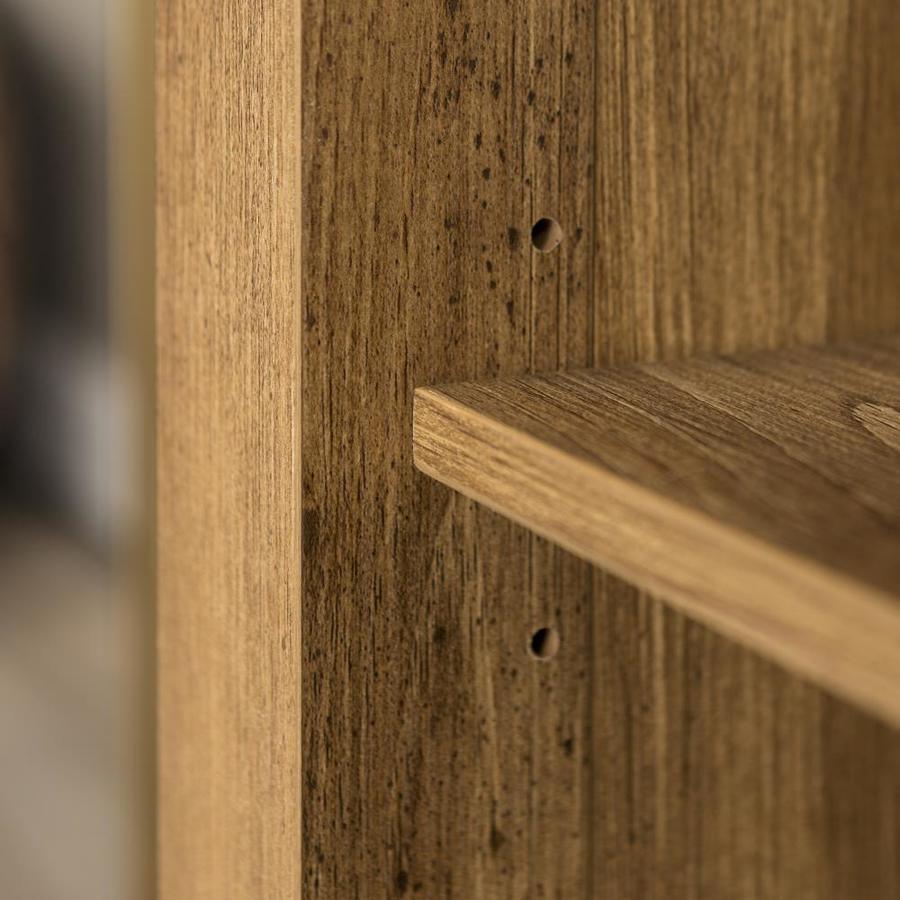 Adjustable shelving on both sides makes it easy to fit your media and more