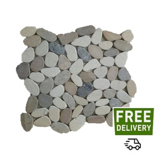 Rain Forest Rain Forest pebble tiles 5-Pack White, Gray, Tan 12-in x 12-in Honed Natural Stone Pebble Mosaic Floor Tile