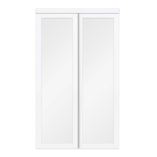 ReliaBilt Twilight 60-in x 80-in White Frosted Glass Prefinished Glass Sliding Door (Hardware Included)