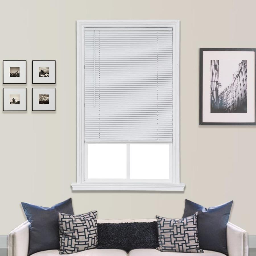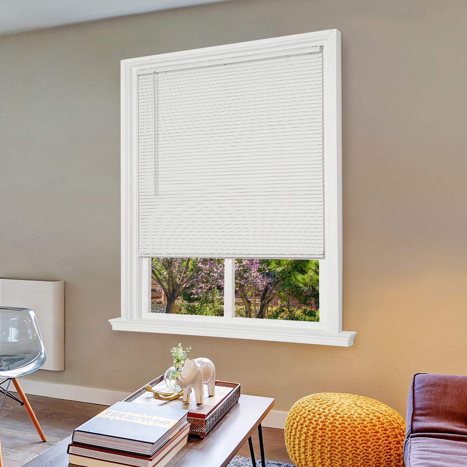 These Project Source mini blinds deliver room-darkening privacy with durable vinyl 1-inch slats. The cordless lift and left-side tilt wand offer safe, clean operation ideal for homes with kids and pets.