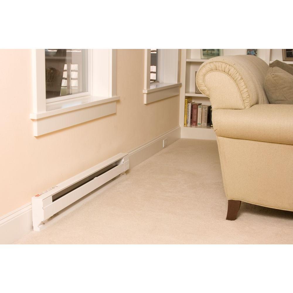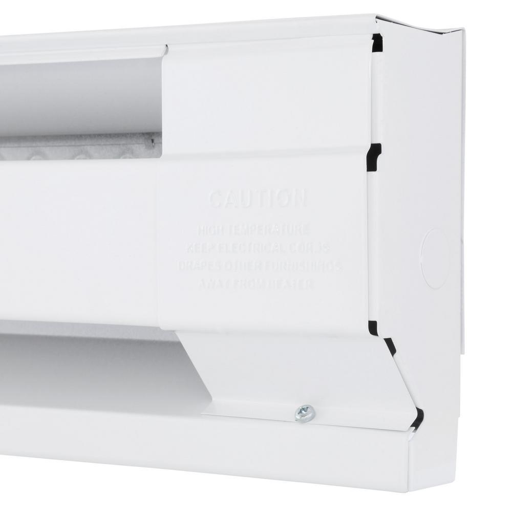 The Cadet Electric Baseboard Heater utilizes convection heat to provide efficient warmth. The quiet operation, and low cost installation make it a perfect choice for a bedroom or any area of your home that requires additional warmth. Designed for ease of installation with pre-punched mounting holes, this hardwired heater can be wired at either end. Rugged U.S.A steel construction with powder coated white paint for a durable, premium finish. A thermostat is required and sold separately.