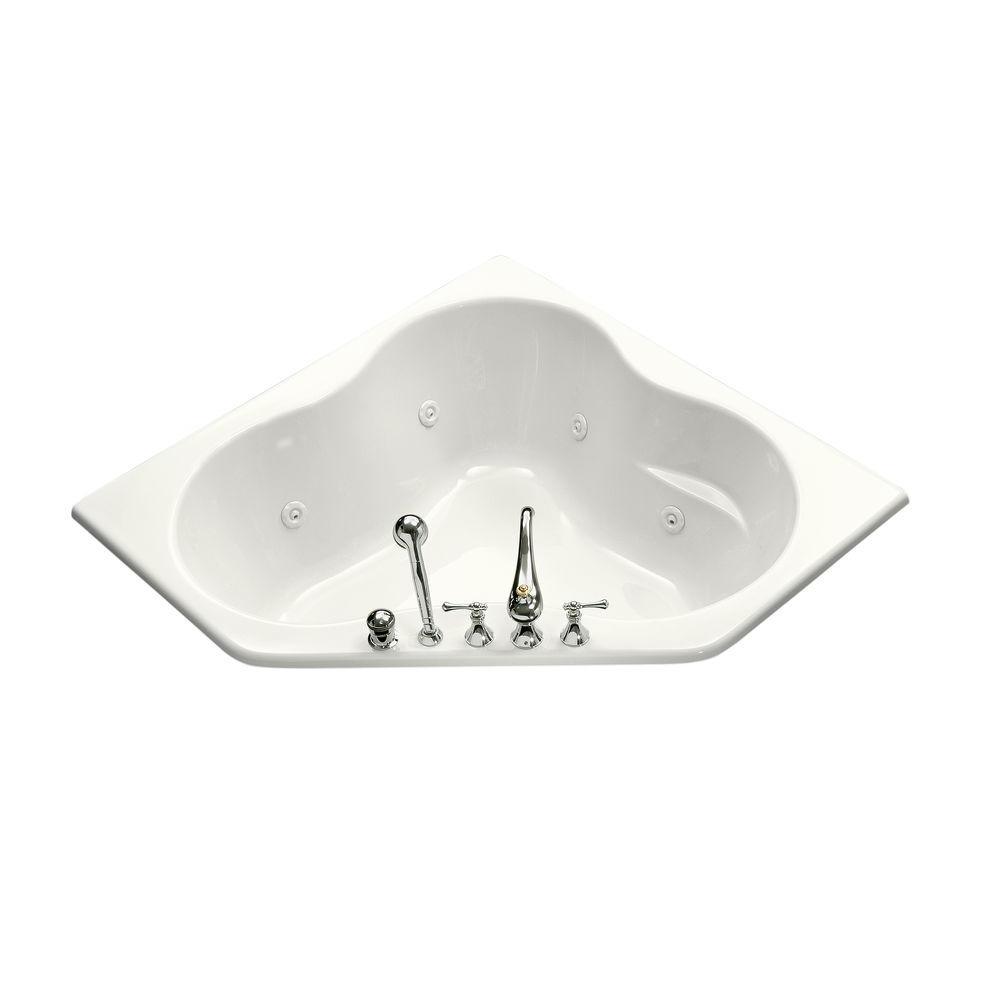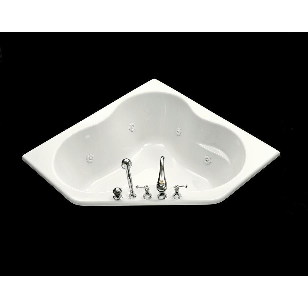 Bring dramatic design and functional elegance to the bath with a ProFlex Whirlpool. This 54 in. corner model offers six adjustable ProFlex Whirlpool jets for a soothing hydro-massage, and a factory-installed heater that maintains a steady water temperature. The bath features a faucet-mount deck and custom pump locations expand your installation and pump access options.
