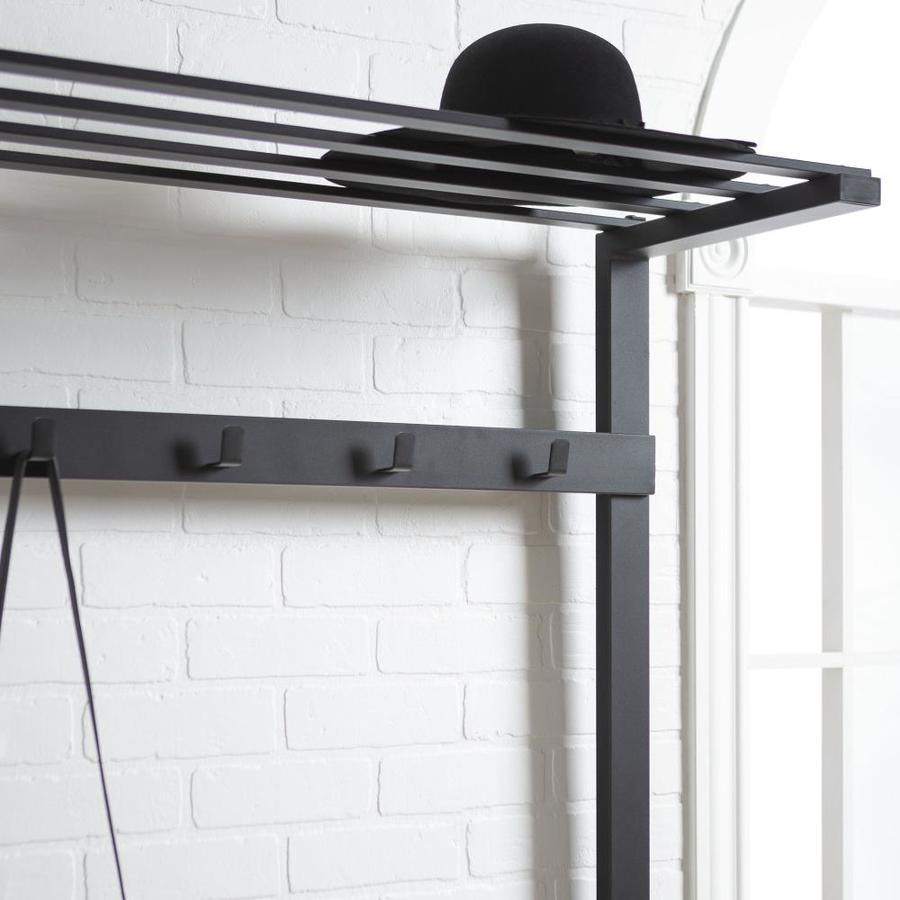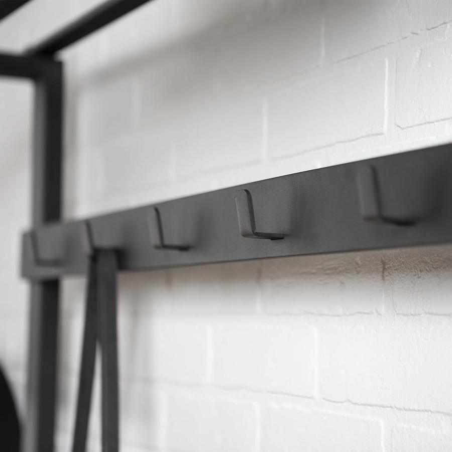 Featuring an urban industrial style to add to your entryway, hallway, or mudroom Creates added storage space to anywhere in your home with its compact and tall design Constructed out of high-grade MDF with powder-coated metal Five clothing hooks create space for clothing and bags The design is perfect for placing your shoes on the bottom Ships ready-to-assemble with step-by-step instructions