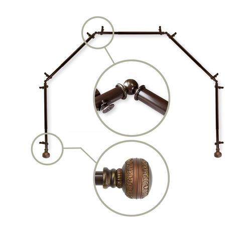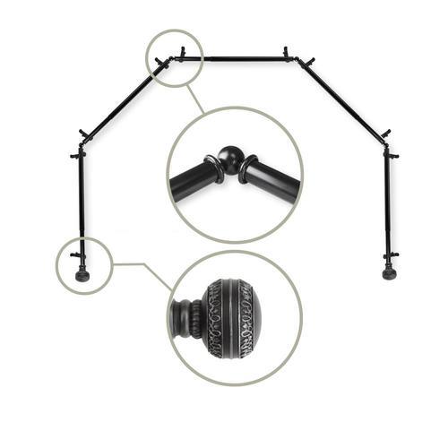 Includes five 13/16-in diameter adjustable poles, ten brackets, four corner connectors, one pair of decorative finials, and mounting hardware