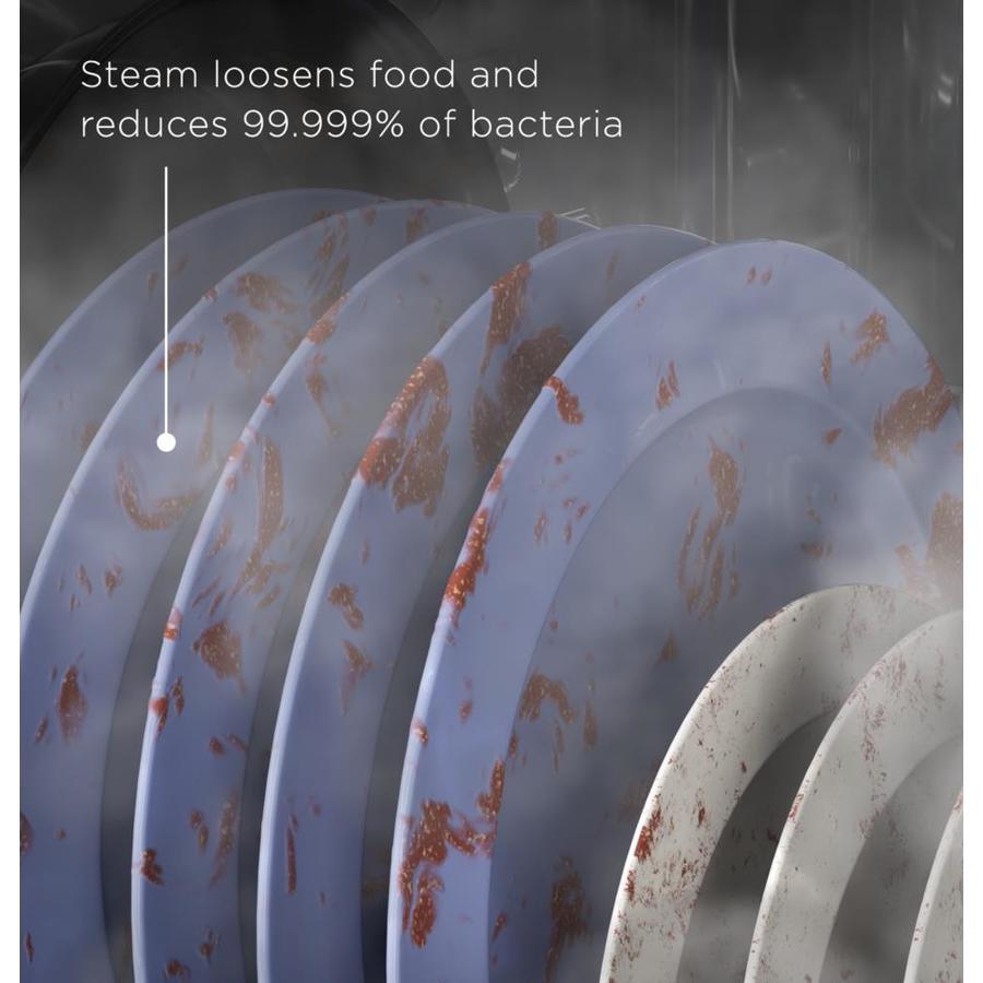 Steam and Sani - loosens tough soils before any cycle virtually eliminating the need for soaking or pre-rinsing dishes; plus a High-temperature rinse sanitizes and reduces 99.999% of bacteria found on dishes